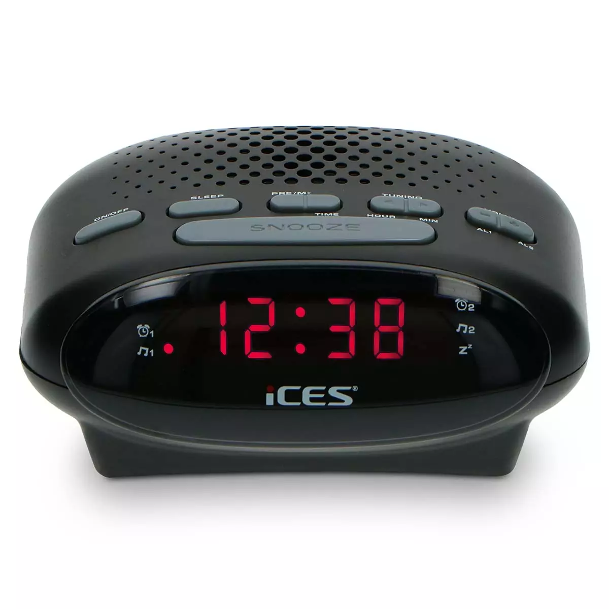 Vakna upp med din favoritmusik eller ditt favoritradioprogram? Med den moderna Ices ICR-210 blir uppvaknandet en av dina nyaste hobbies! FM-klockradion visar inte bara tiden, utan hjälper dig också att vakna i tid var och när du vill. Den kompakta storleken gör det enkelt att ta med sig väckarklockan på semestern eller när du sover över. Vakna med stil helt enkelt. Det är väl vad du vill ha, eller hur? Snooze-funktion För barn är det en liten räddning att få stanna kvar i sängen lite längre utan att komma för sent. Med den här superpraktiska knappen stängs larmet av en stund och ringer igen efter 9 minuter. Det här är perfekt om du inte vill hoppa upp ur sängen direkt utan föredrar att vakna långsamt. LED-display Se vad klockan är: även i mörkret! Med Ices ICR-210 kan du alltid se vad klockan är. På så sätt har du praktisk information till hands så snart du vaknar. Larmfunktioner PLL FM-tunern har två alarmfunktioner. Det gör att du kan ställa in två olika alarm, t.ex. ett för vardagar och ett för helgen. Eller så har du kanske en bror eller syster som vaknar vid olika tidpunkter. Med dessa funktioner hjälper du inte bara dig själv utan även din omgivning. ICR-210 finns i 5 olika färger: svart, blå, rosa, vit och barn. Alltid med 24 månaders garanti. Huvudsakliga egenskaper: • Snooze-funktion • Timer för sömn • Summer/radiolarm • 2 larmtider • LED-display Tekniska specifikationer: • Vikt: 0,31 kg • Typ av strömförsörjning: Adapter/snöre • Batteri: 1 AAA • Mått (D x B x H): 11 x 14 x 5,8 cm Vad finns i förpackningen? • ICR-210 • Manual NL/EN/DE/FR/ES • Strömkabel