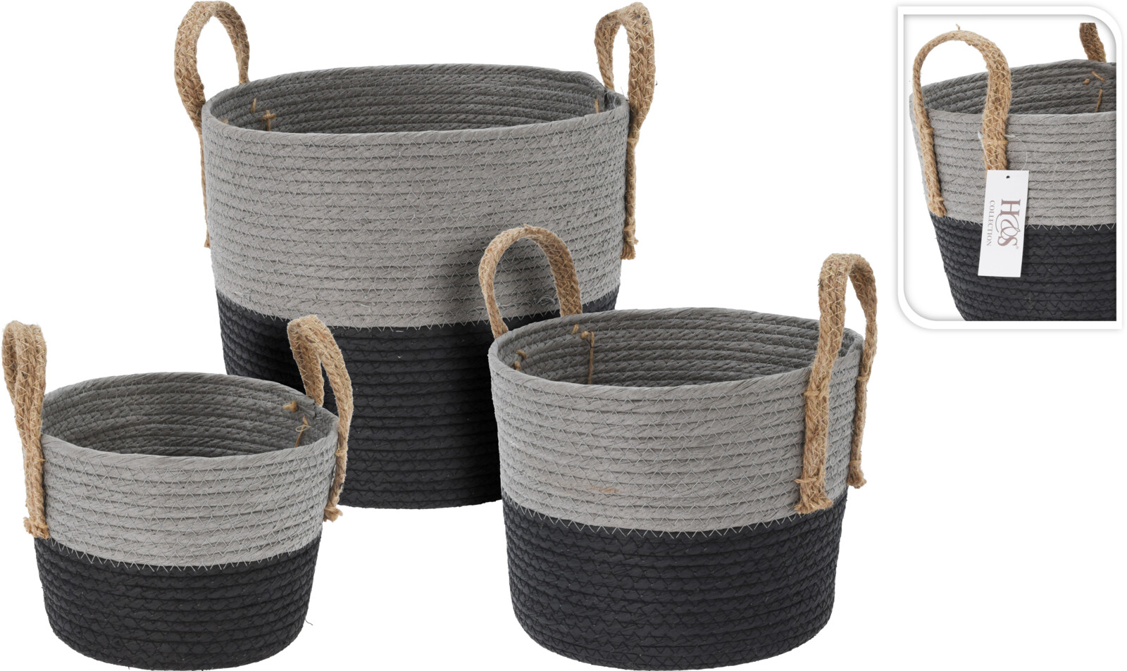 En underbar svart/grå korg för förvaring av småsaker eller till och med som blomkruka.