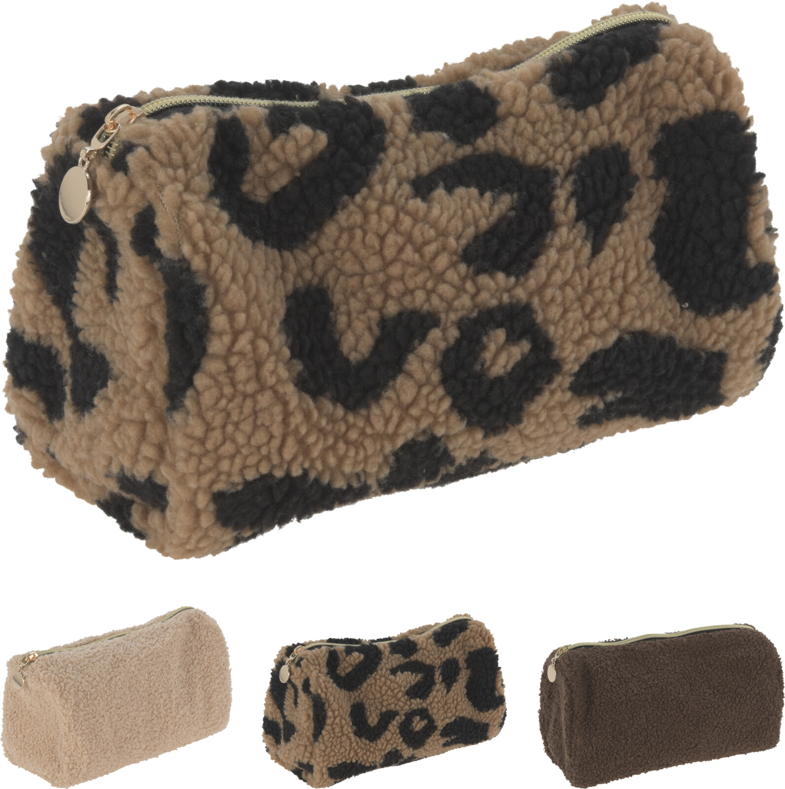 Mjuk och elegant kosmetikväska i teddy- och sherpa-material.