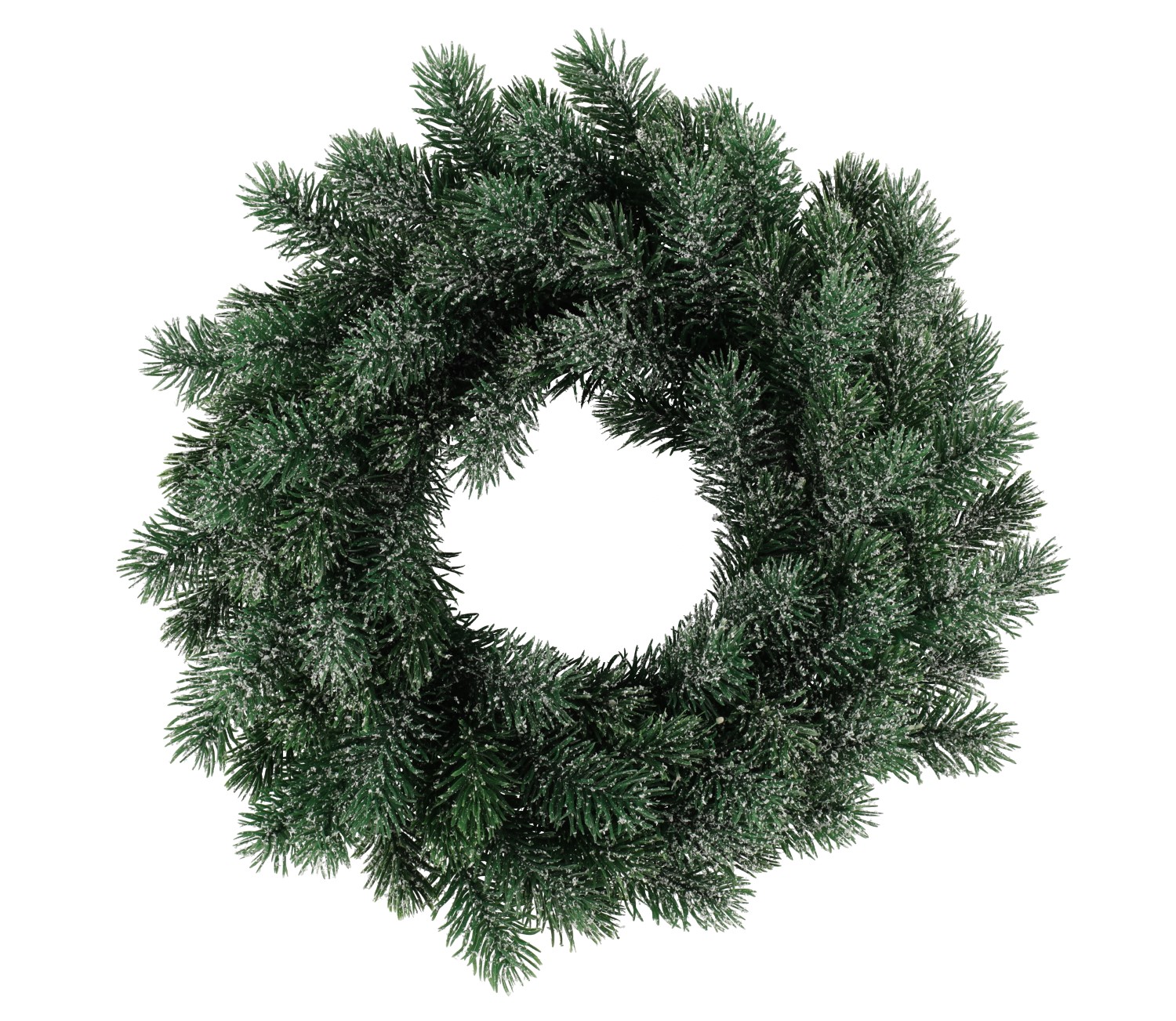 En vacker krans med frostiga grangrenar. Prydlig som den är eller lägg till dekorationer runt den om du vill.