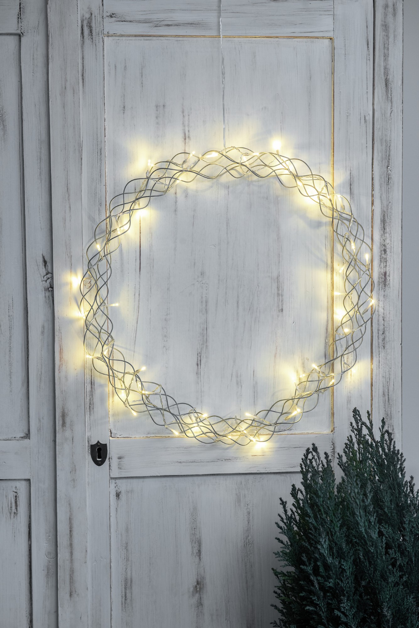 Stor silverfärgad ljus krans, diameter 50 cm.