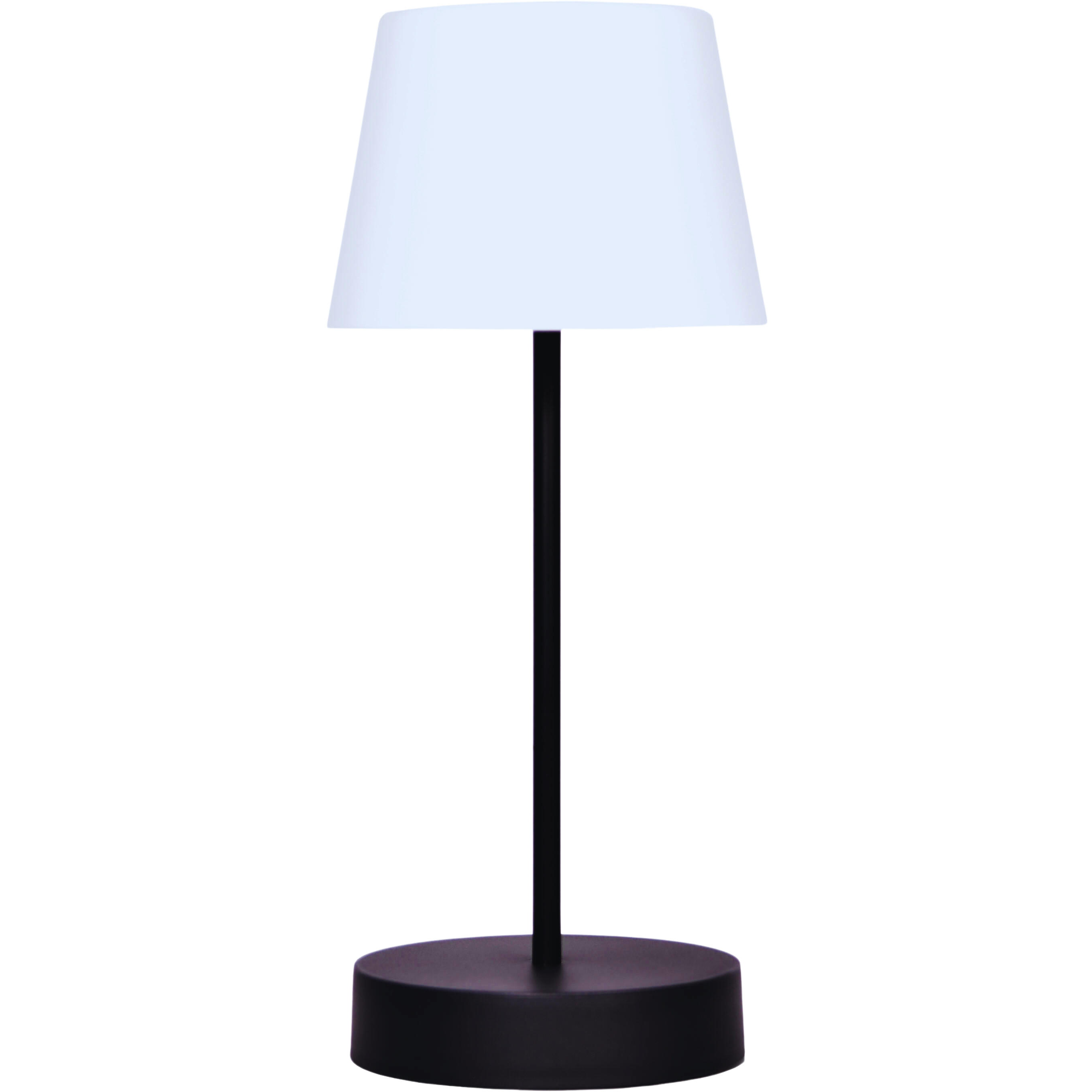 Elegant bärbar bordslampa för både inom- och utomhusbruk. Lampan ger ett behagligt varmt vitt ljus och passar perfekt för att belysa trädgården, stugan, balkongen eller inomhusmiljöer. På skärmens ovansida finns en beröringsknapp som tänder lampan på full effekt och sedan gradvis dimmar ljuset till 50% och 10% innan den stängs av. Batteriets drifttid på full effekt är cirka 8 timmar och laddningstiden är cirka 6 timmar.