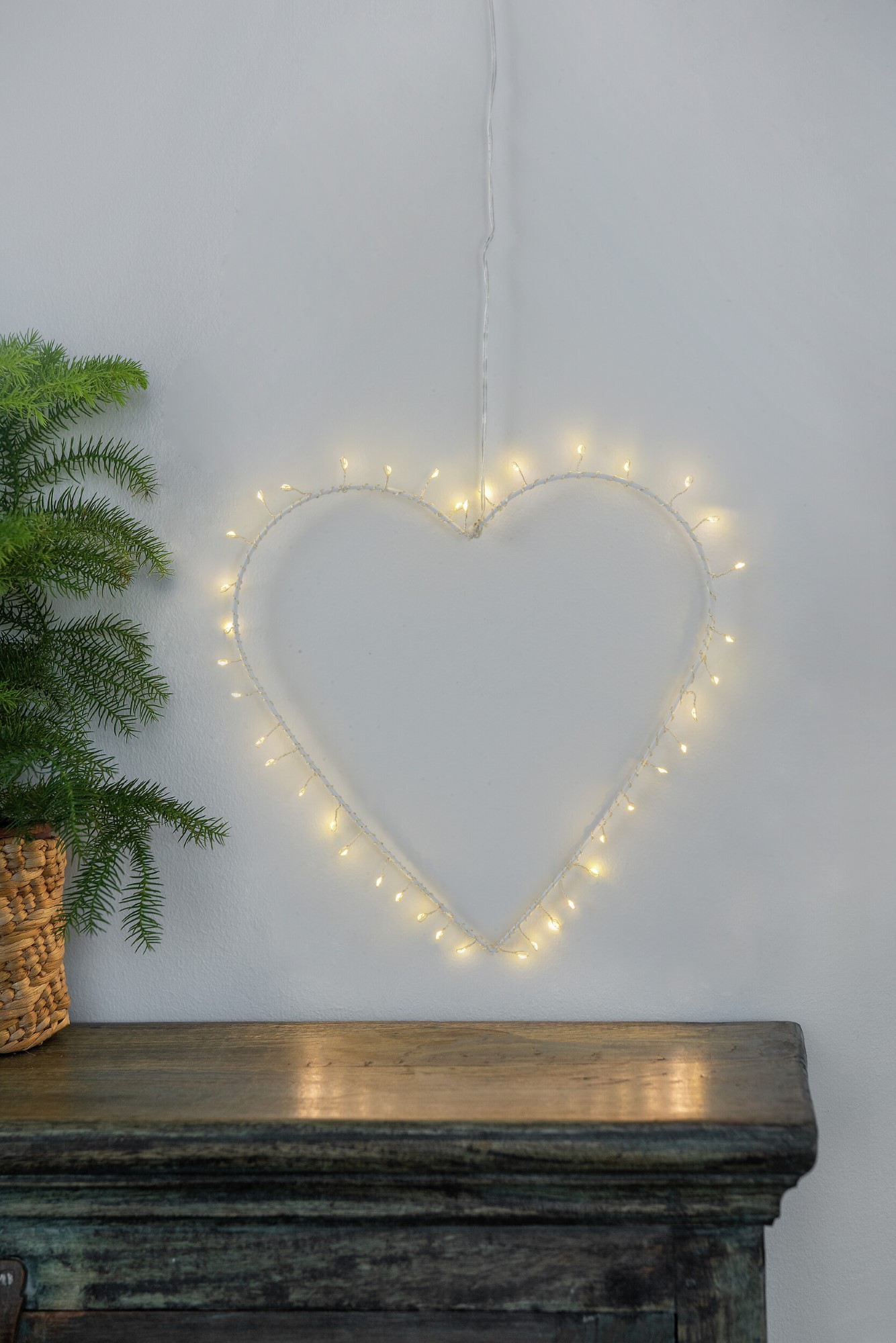En snygg dekoration för ett fönster eller inredning. Led-tråd lindad runt den vita metallramen, lysdioderna kan böjas till önskad form.