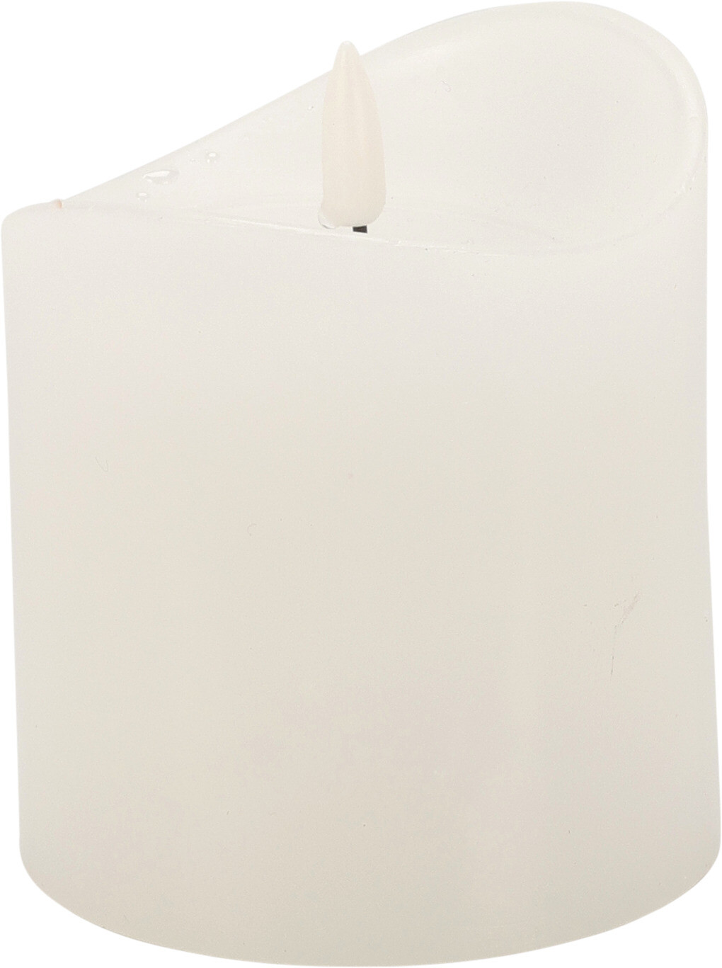 LED-ljus med lågeffekt, vitt vax. Storlek: 90x90x100 mm. Timerfunktion: 6 timmar på / 18 timmar av. Batteridriven: 2 AA-batterier ingår ej i förpackningen.