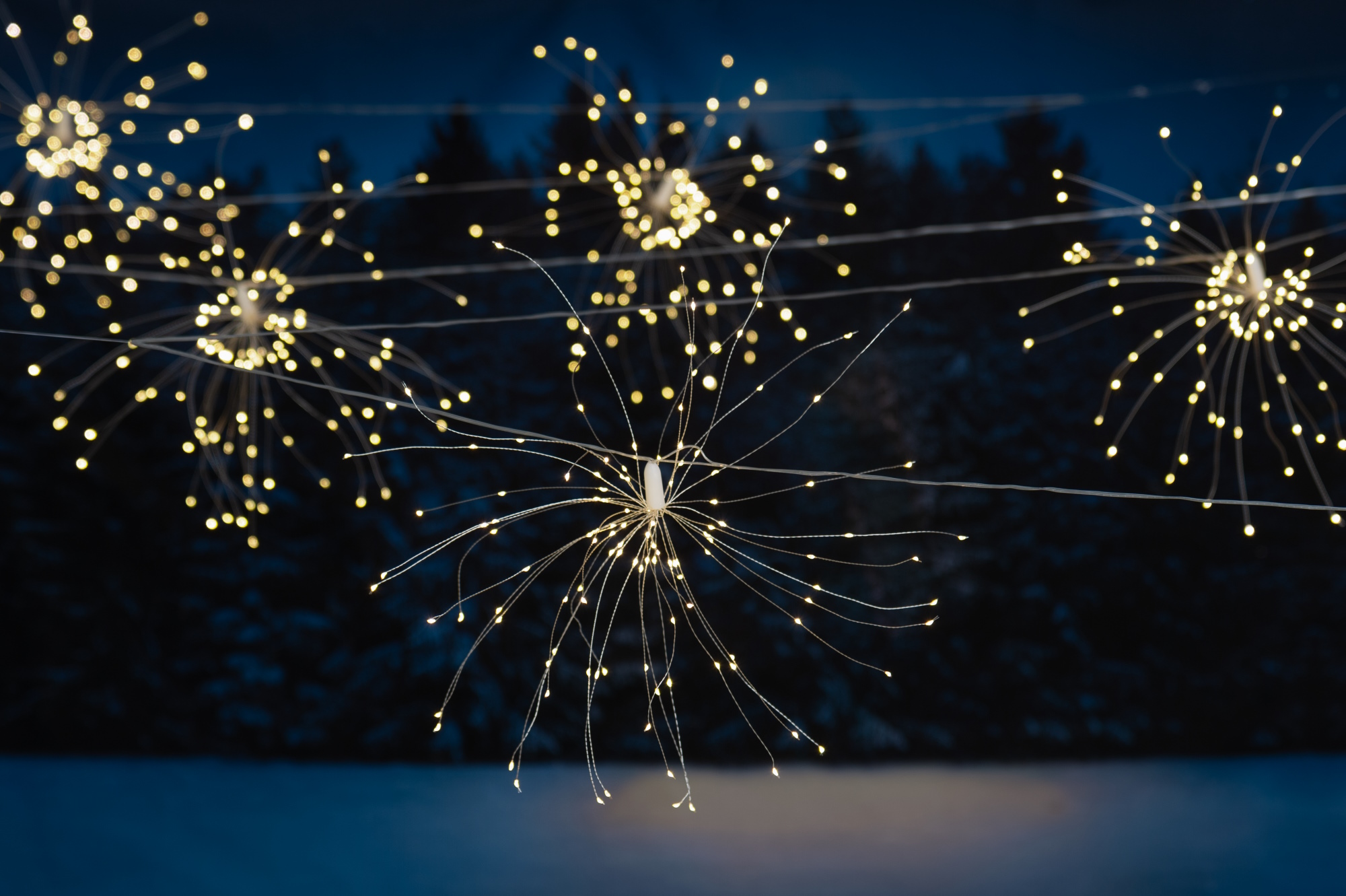 En vacker MicroLED-ljuskedja med 120 varmvita microLEDs i var och en av de fem stjärnorna.