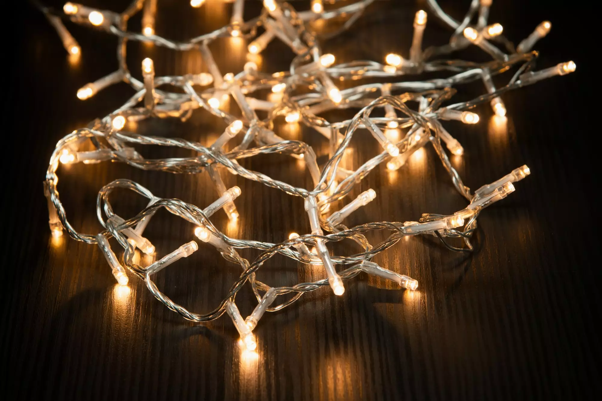 30 m ljusslinga med 600 mini-LED. Glödlampslikt sken, 5 cm mellanrum, 10 m kabel. IP44-adapter för inne/ute. Levereras i förvaringslåda.