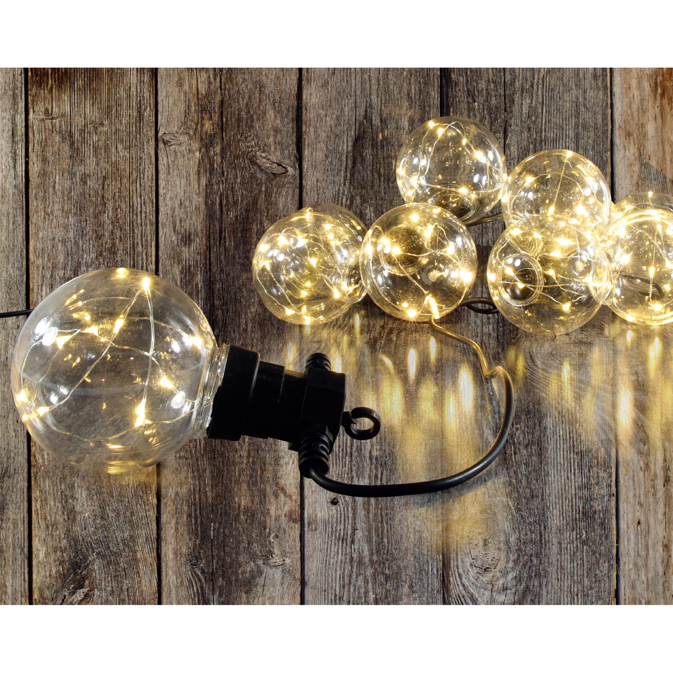 Lumo Party Light 10-delat ljusset skapar en underbar atmosfär både inomhus och utomhus. Ljusa kupolljus ger varmvitt ljus och en stilren look för alla fester eller trädgårdar. Ljusseriens totala längd är 7,5 meter och avståndet mellan lamporna är 50 cm, vilket möjliggör belysning av ett stort område.