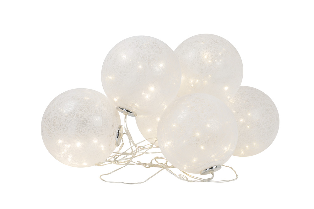 En väldigt vacker ljusserie med bumullsbelagda bollar är en imponerande inredningsdetalj. För inomhusbruk.