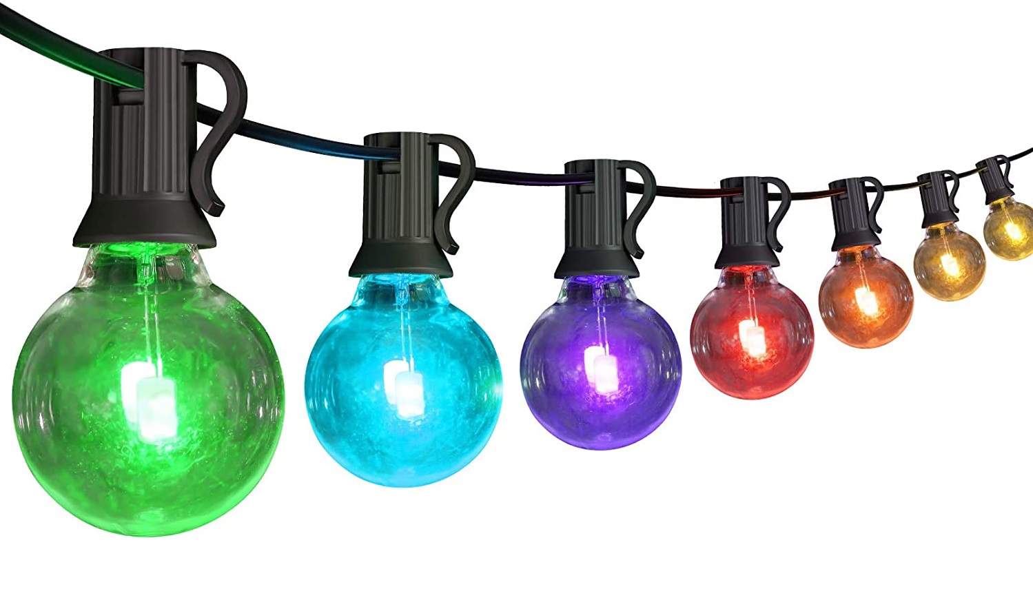 En vacker uppsättning dekorativa lampor med färgade kupoler och LED-lampor. Setet innehåller gula (3st), röda (3st), blå (2st) och gröna (2st) lampor. Ljusserien är lämplig för utomhus- och inomhusbruk.