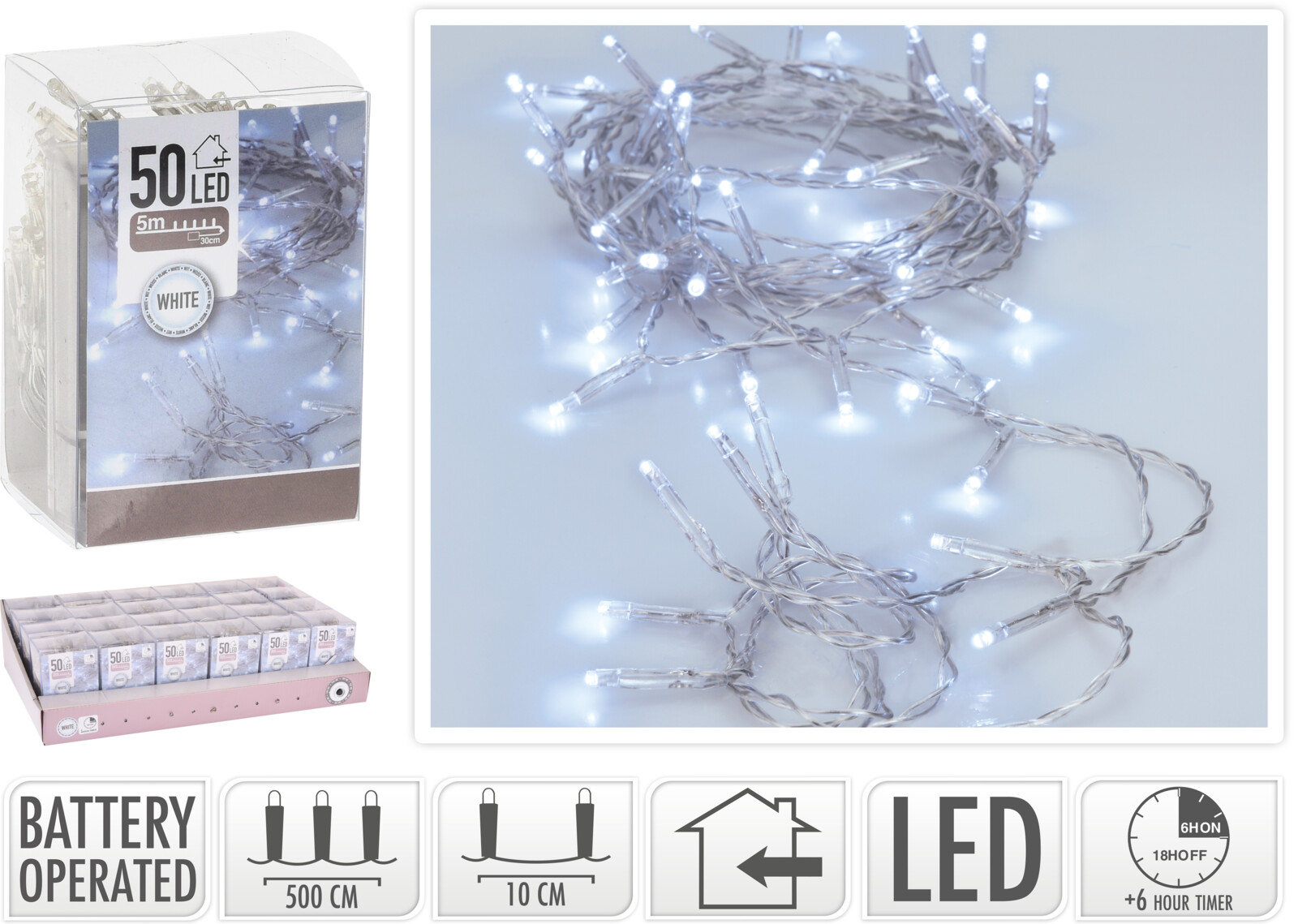 - LED Antal: 50 ljusa vita lysdioder med 3 mm glödlampa.