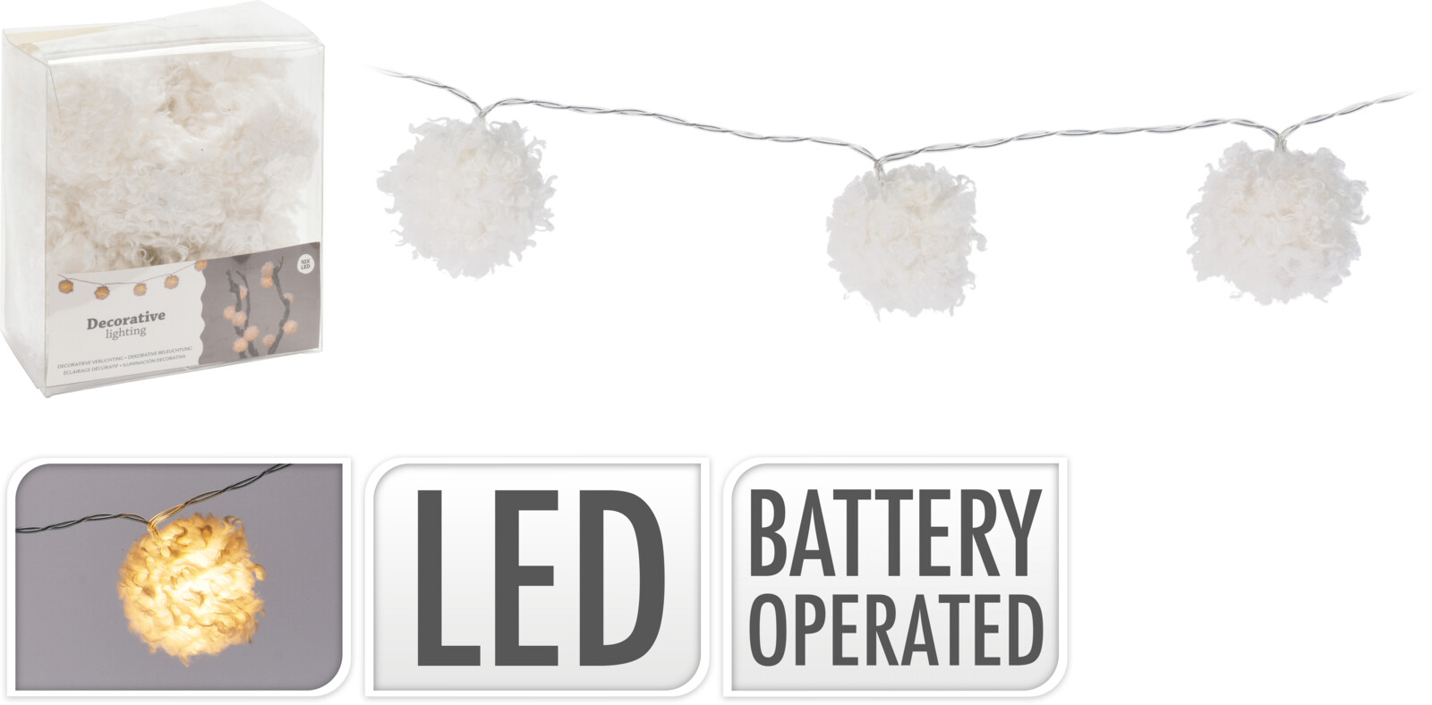 PomPom ljusserien är en härlig kombination av mjuka bollar och varmvita LED-lampor som skapar en mysig och festlig atmosfär i alla utrymmen vid jul.