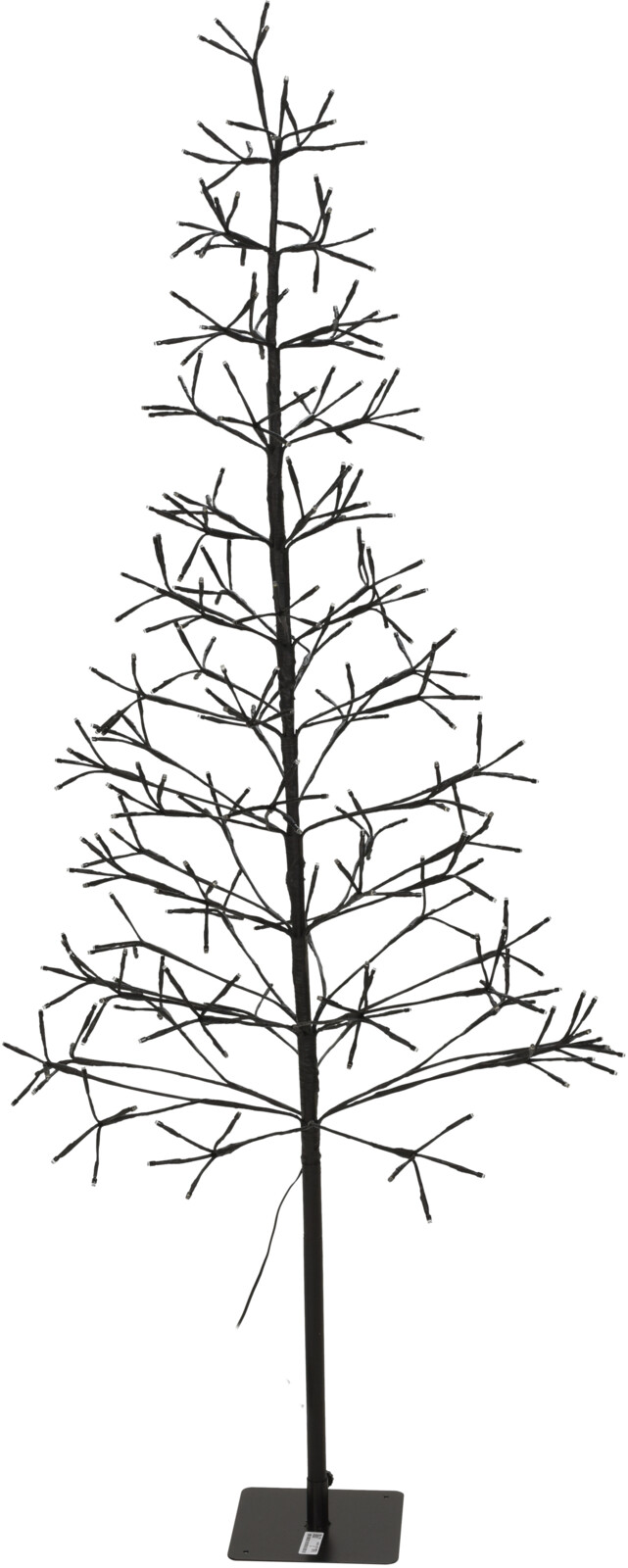 Granträd med led i A-form, 12 nivåer, produktionsmaterial PP. Höjd: 150 cm. Utrustad med 280 stycken varmvita 5 mm LED-lampor. IP44 GS-adapter ingår. 3-delad vikbar (3KD) design. Sladdlängd: 500 cm. Metallstativ, förpackad i en färgad låda / 180x60x1200 mm, färgglad låda.