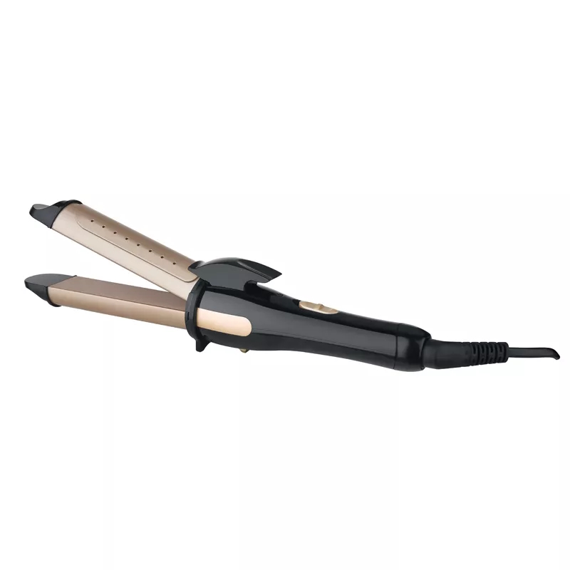 Praktisk locktång/plattång i ett paket. Diametern på curlern är 30 mm, storleken på formningsplattorna är 90 x 30 mm. Beläggningen av formningsplattorna är keramisk. Temperatur 200°C. Passar även för fuktigt hår. 360° roterande sladd.
