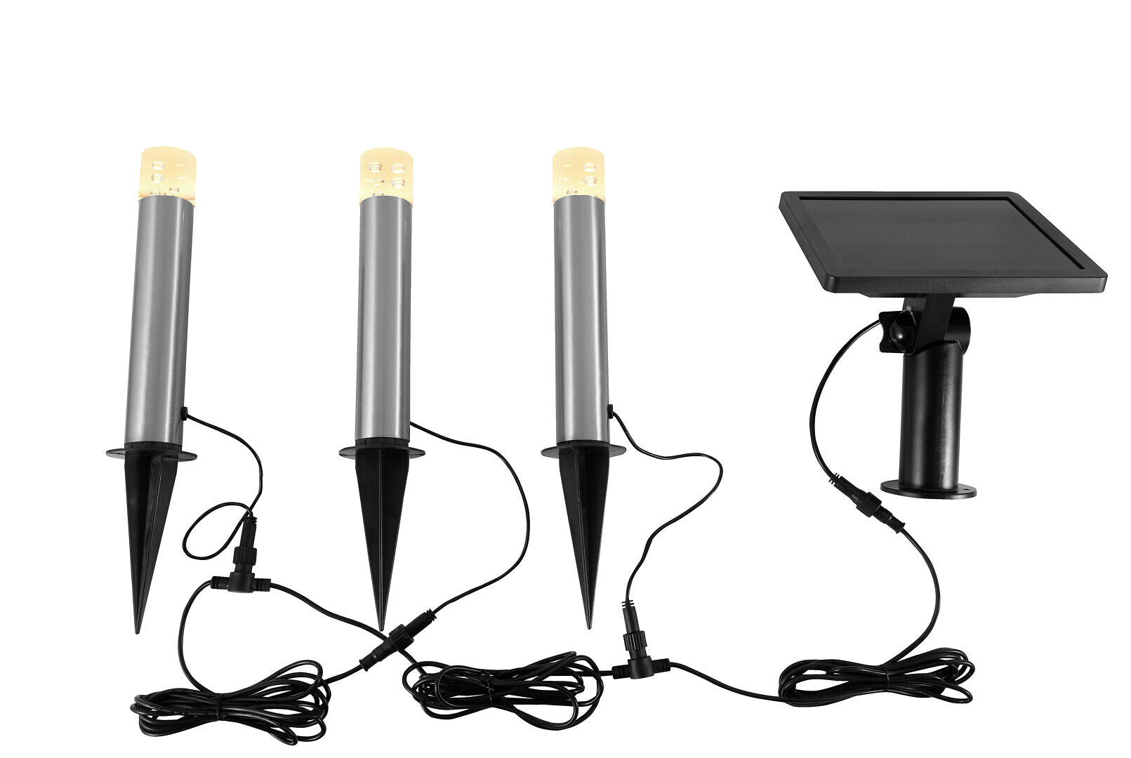 Med solcellslampor kan du enkelt skapa ljus i gårdens mörka hörn. Det tredelade pollarlampssetet drivs med en stor solcell. Enkelt sätt att markera gångar och accentuera kantområden utan att nya eldragningar behövs! Setet innehåller en solcell och tre pollare som ger ett klart vitt ljus (100 lm, 3000 K). Pollarnas material är rostfritt stål. Plastlins med förtjusande bubbeldekoration på insidan. Utbytbart batteri.