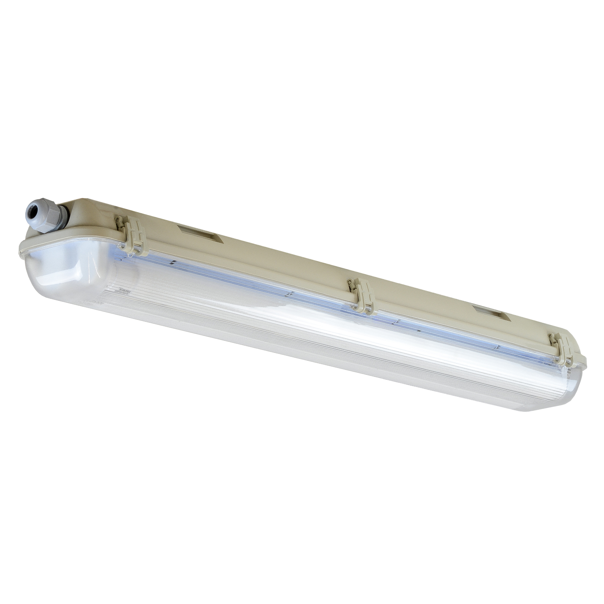 LED lysrörsarmatur med 2 x 9W utbytbara lysrör. LED lampor tänds omedelbart och sparar energi, lampans ljusstråle är jämn och ljuseffekten är effektiv. Ett lysrör med lysdioder är ett modernt och säkert val som belysningsalternativ på platser där traditionella lysrör tidigare använts. Utmärkta användningsområden är t ex lager, källare, carportar, verkstäder, stall och andra liknande ytor. Fungerar bra i kylan.