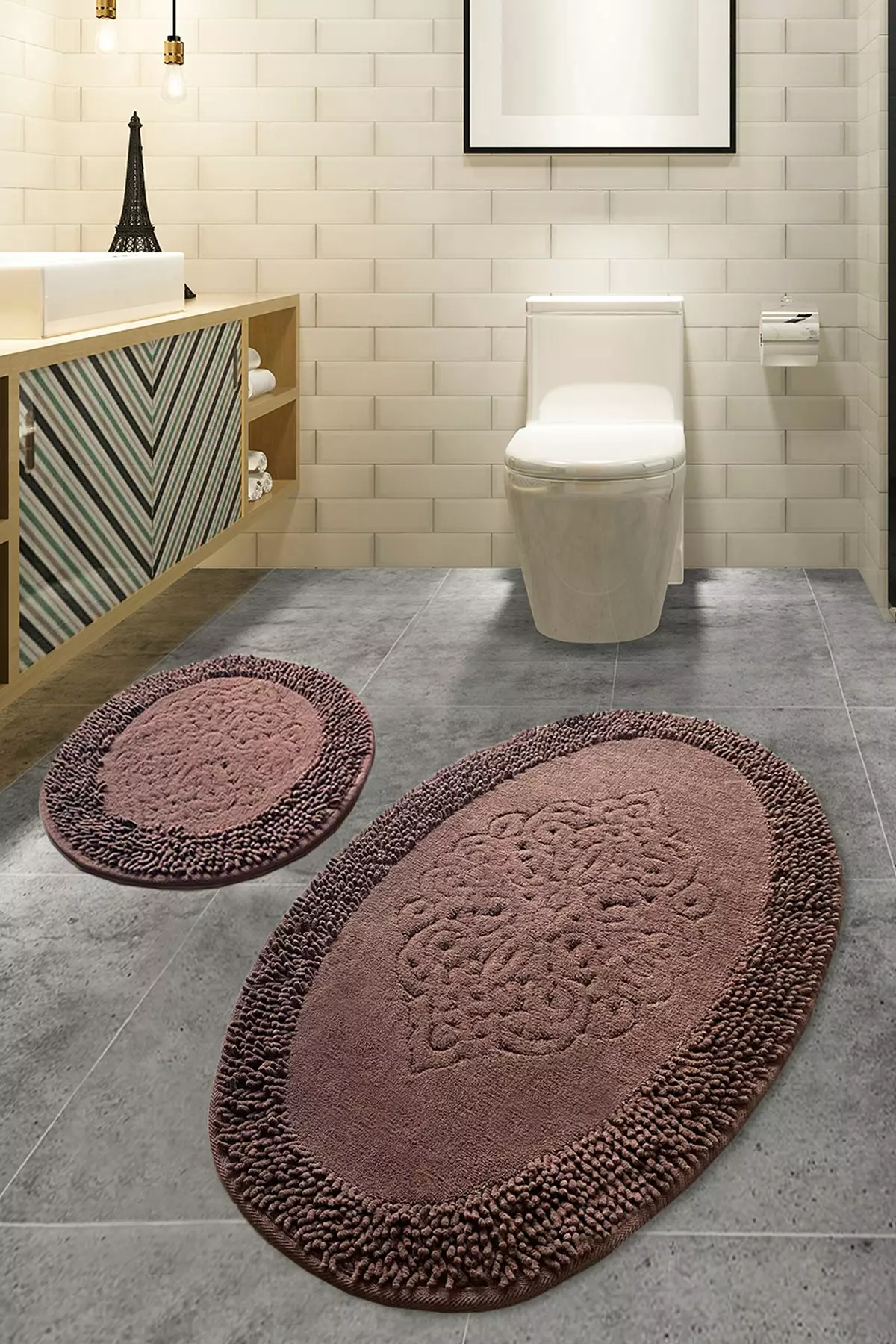 Lyxigt badrumsmatteset (2 st), flerfärgad, 50 x 60 cm och 60 x 100 cm, antibakteriell, halkfri