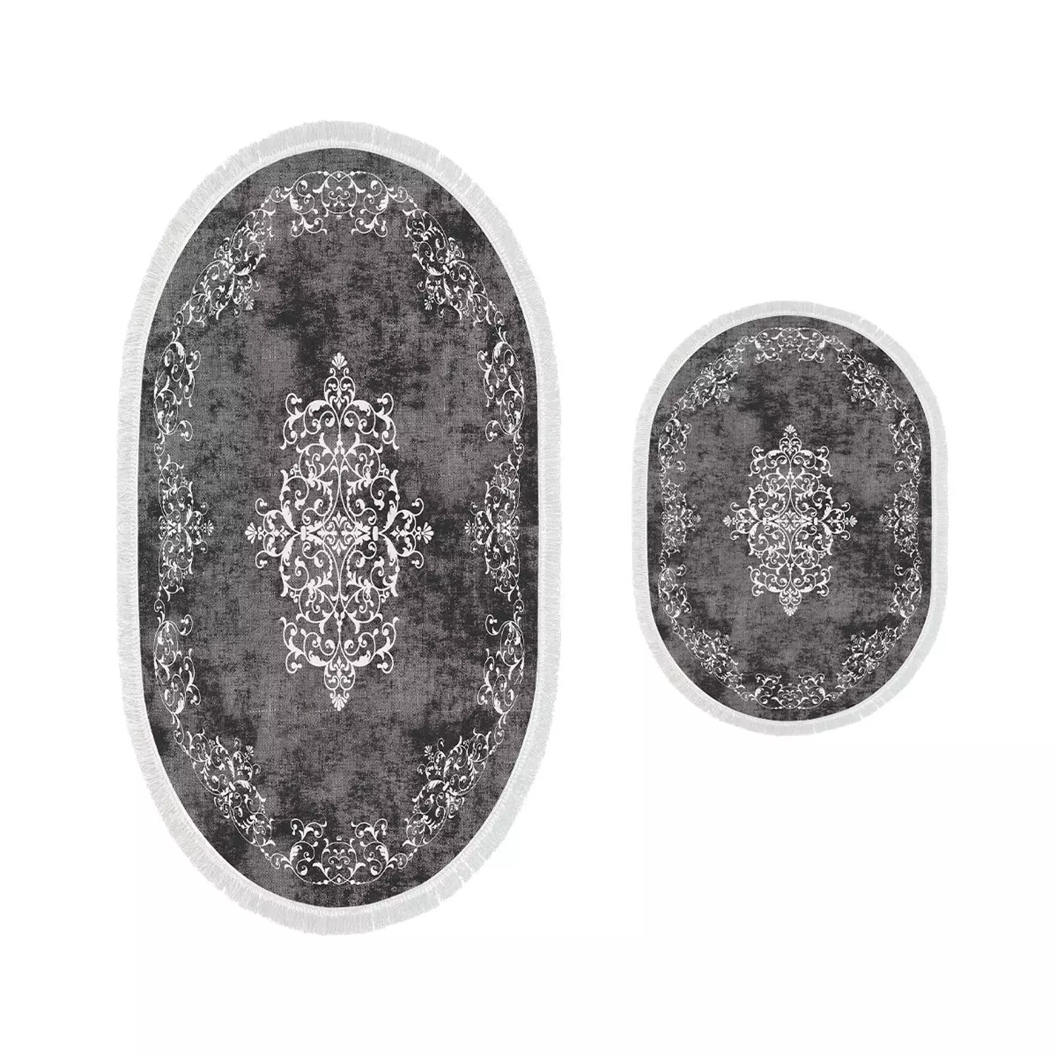 Badmattssetet kommer i en snygg grå färg som ger en sofistikerad touch till din badrumsinredning. Setet innehåller två delar, där den ena badmattan mäter 50 x 60 cm och den andra mäter 60 x 100 cm, vilket ger gott om täckning för ditt badrumsgolv.