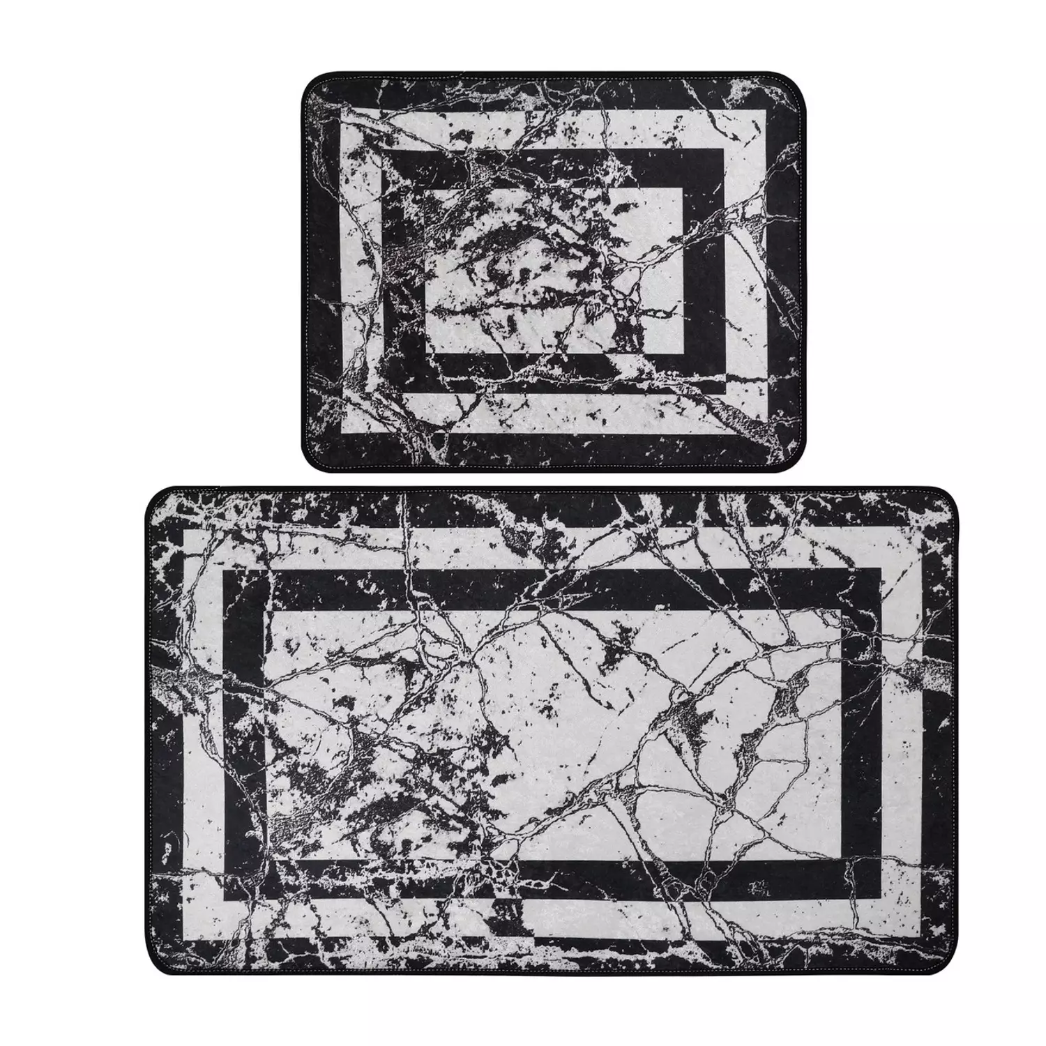 Lyxigt badrumsmatteset (2 st), svart/vitt, 50 x 60 cm, 60 x 100 cm, mjukt, antibakteriellt, halkfritt