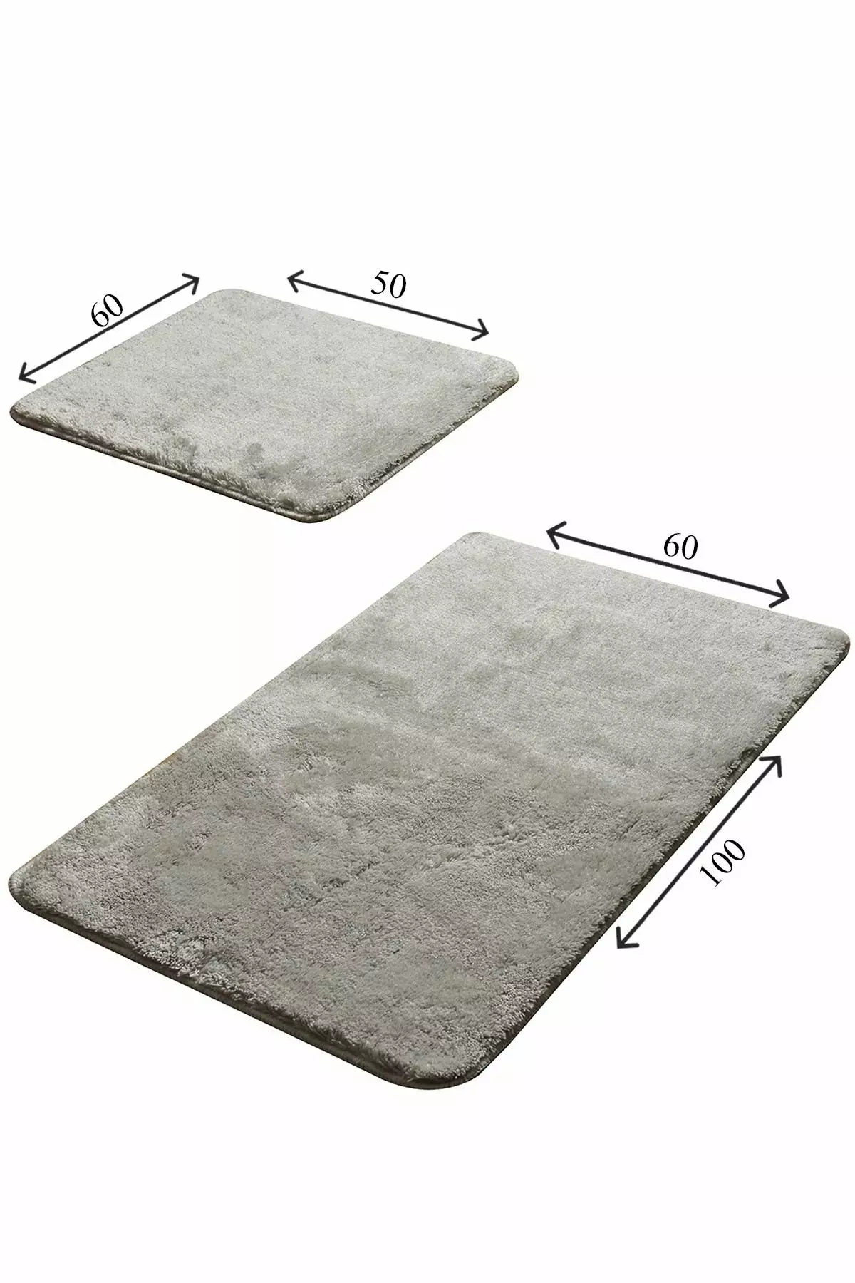 Lyxigt badrumsmatteset i akryl (2 st) - antibakteriellt och halkfritt, grå, 50 x 60 cm, 60 x 100 cm, antibakteriell, halkfri, maskintvättbar