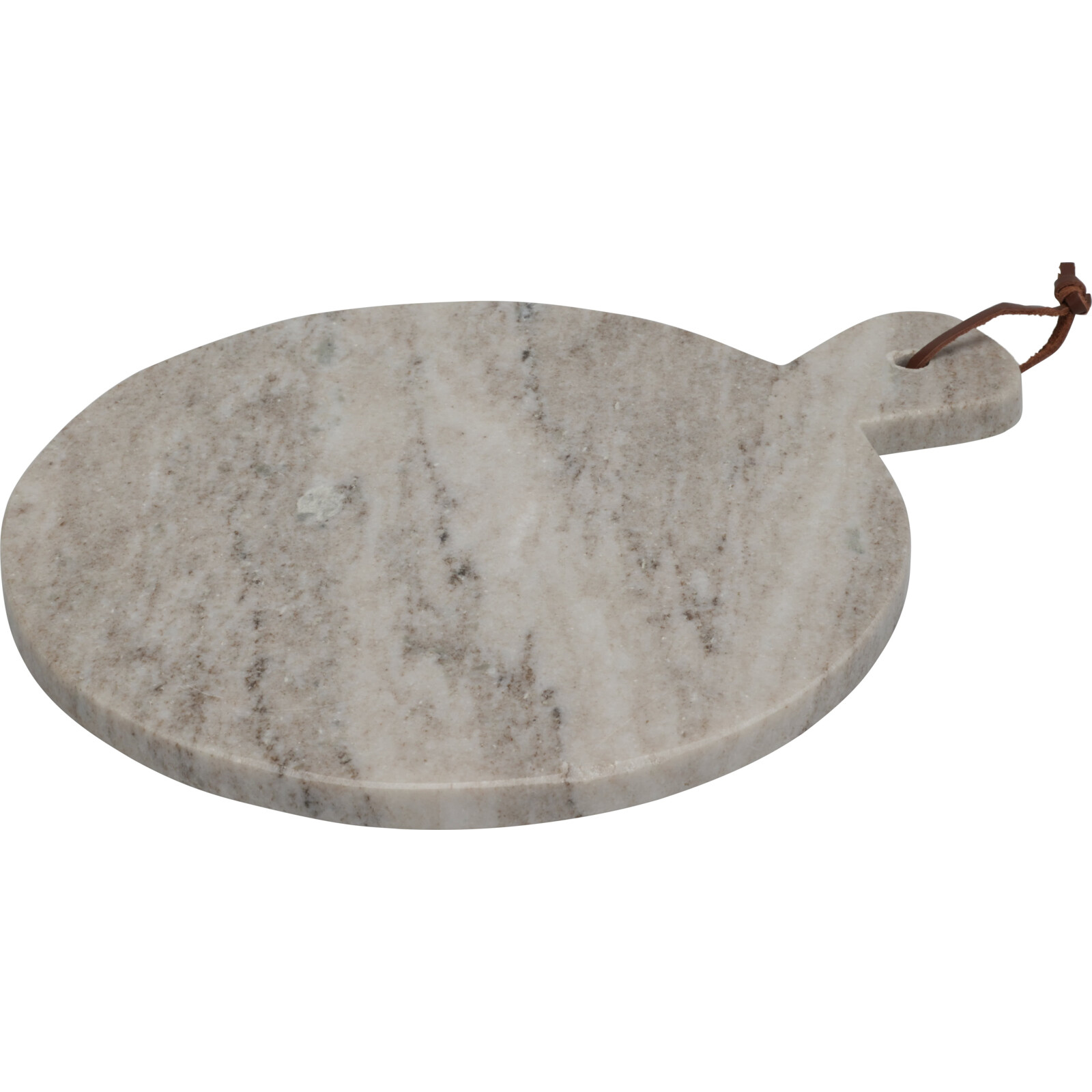 Denna stiliga runda marmor skärbräda eller underlägg är ett perfekt tillägg till ditt kök. Den är tillverkad av högkvalitativ beige marmor och har ett läderband som underlättar upphängning och förvaring. Skärbrädan/underlägget är praktiskt och samtidigt ett vackert inredningselement.