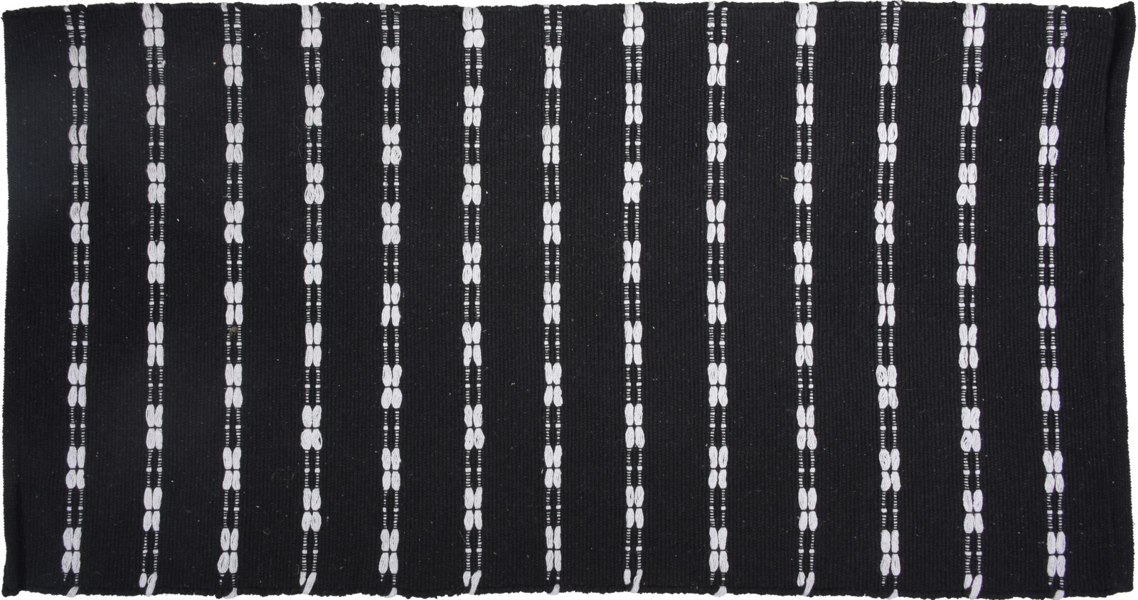 En underbar svart bomullsmatta med vita detaljer.