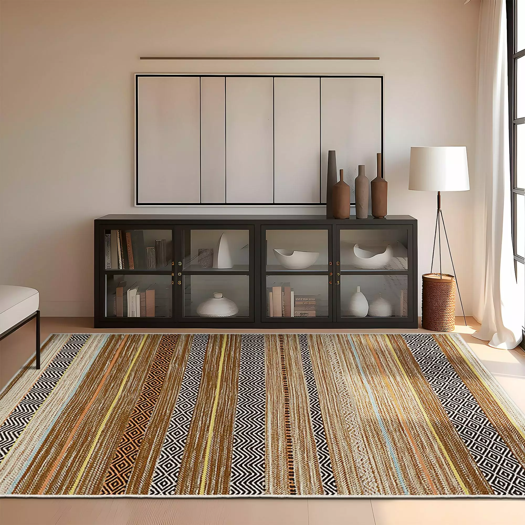 Lägg till en touch av elegans i ditt vardagsrum, sovrum eller hall med vår vackert utformade matta. Den 3D digitala trycktekniken säkerställer livfulla färger och intrikata detaljer som kommer att förbättra estetiken i ditt utrymme.