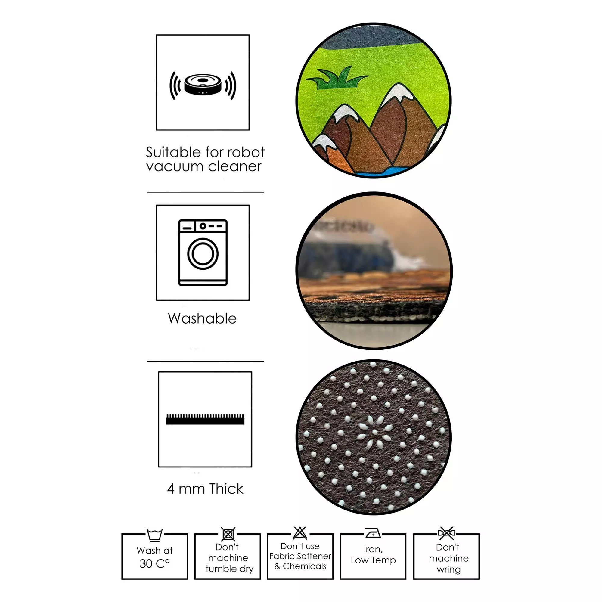 Att hålla din matta ren är en enkel uppgift med dess maskintvättbara design. Tvätta bara med skonsamma program vid 30-40 grader för ett fräscht och prydligt utseende. Undvik starka kemikalier och direkt solljus för att bevara skönheten hos din matta i många år framöver.