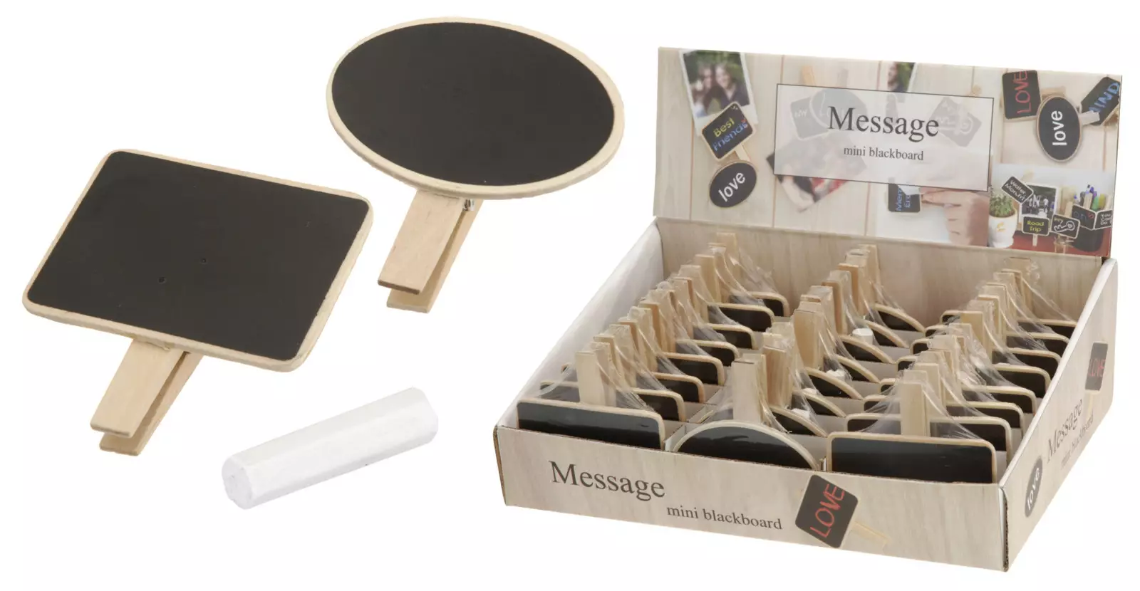 Mini griffeltavla i trä 7 x 7 cm – 2 modeller, svart skrivyta