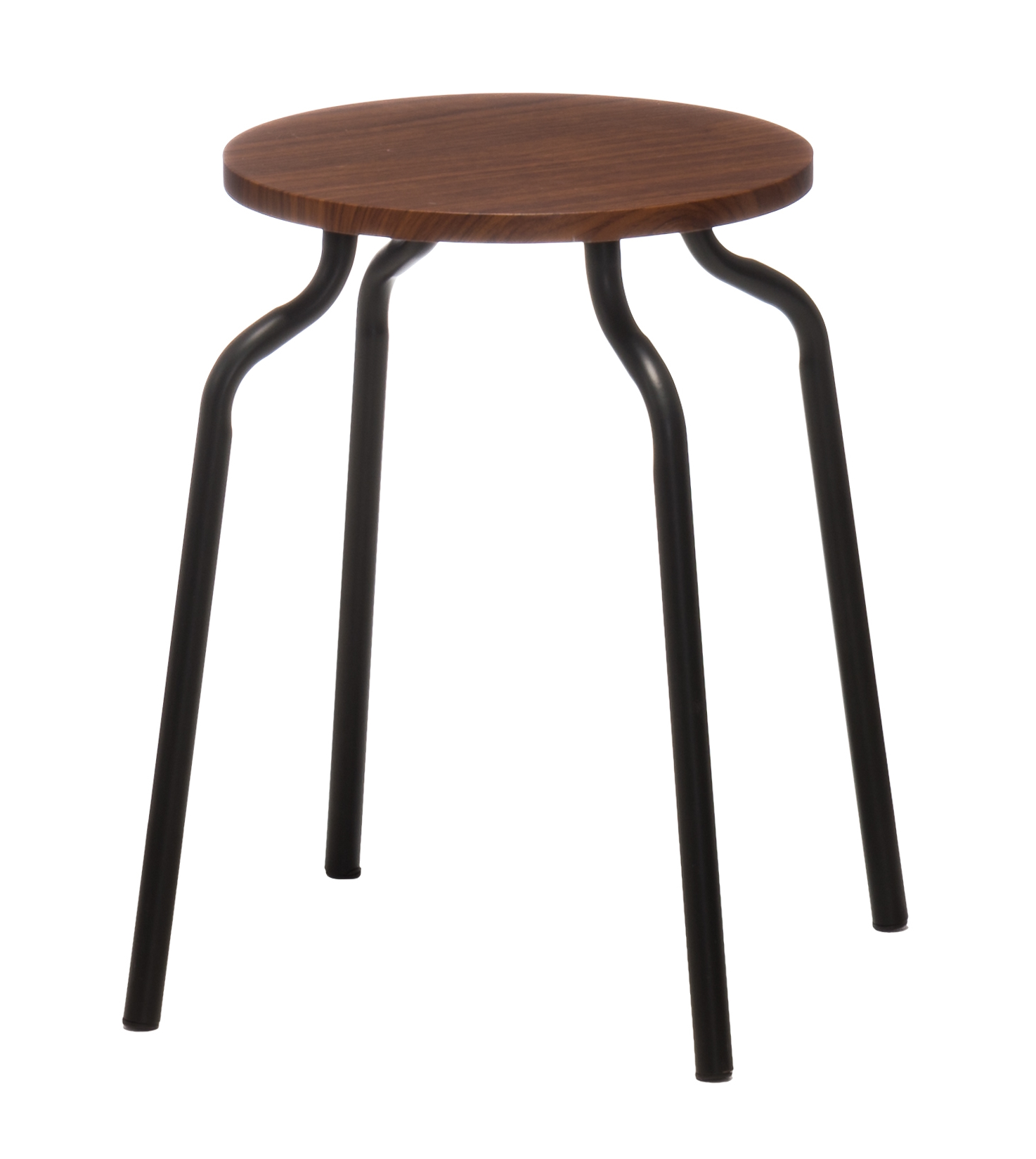Mörkbrun pall med mattsvarta metallben. Max lastkapacitet 100 kg. Stapelbar.