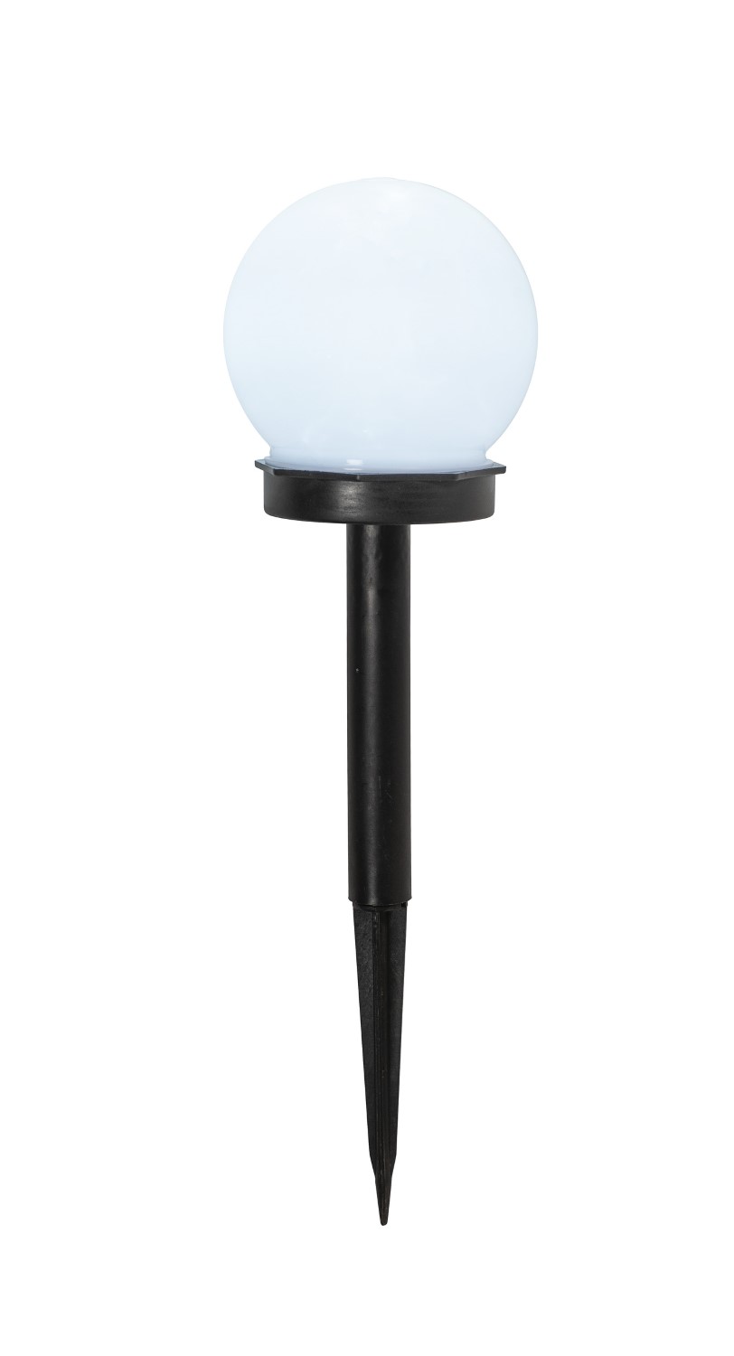 Sollyktan har en klassisk rund form. Ljuset reflekterar vackert inifrån den vita kupolen. Markspetsen är inuti fotdelen. Led vit, ej utbytbar, brinntid cirka 10 000 timmar. Uppladdningsbart batteri ingår, kan inte bytas ut. För utomhusbruk.