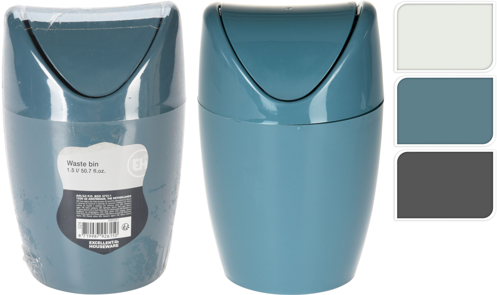 En praktisk papperskorg på 1,5 liter. Perfekt för mindre utrymmen som badrum eller under skrivbord.