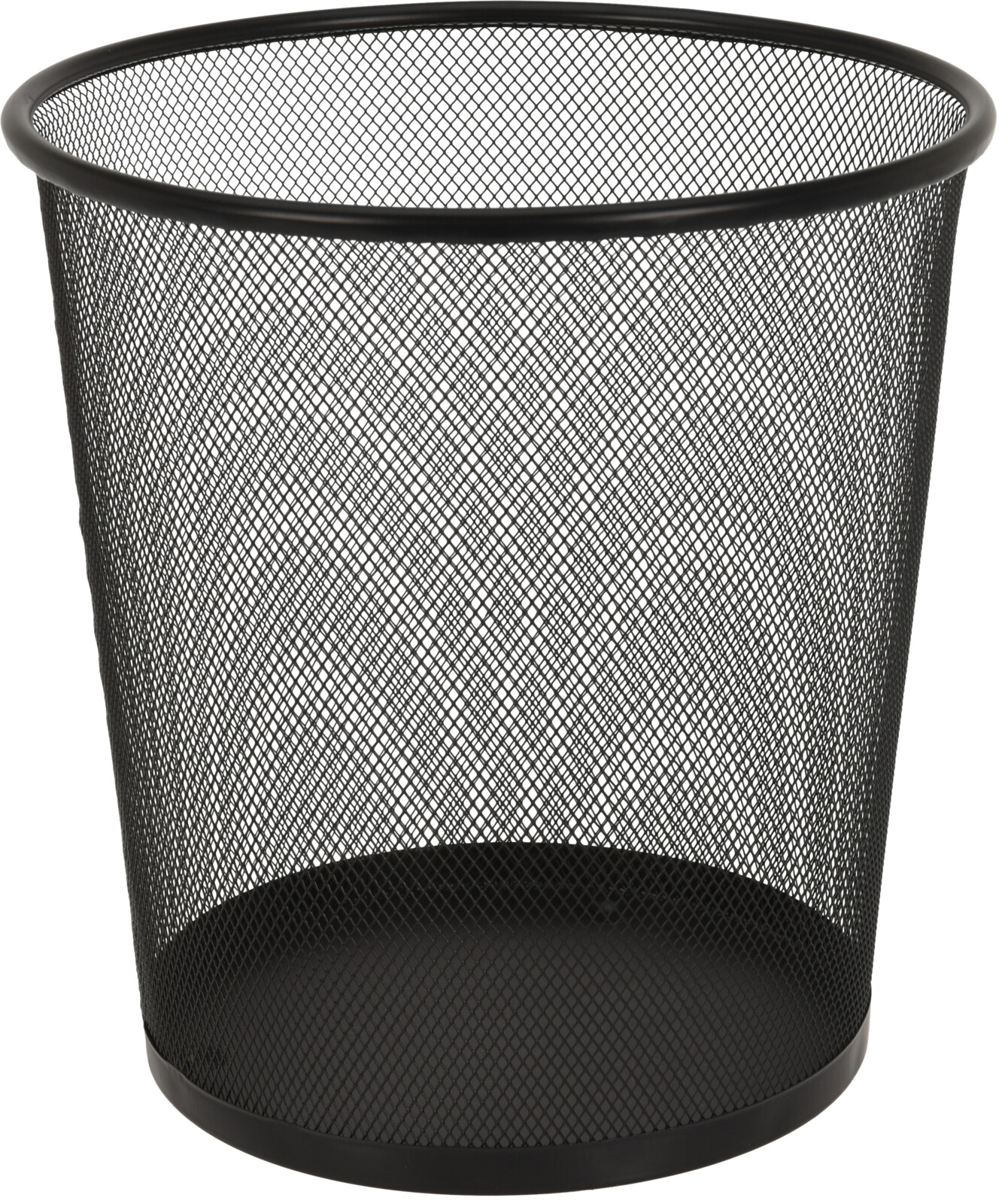 Svart metallnät papperskorg, diameter 26,5 cm, höjd 28 cm.