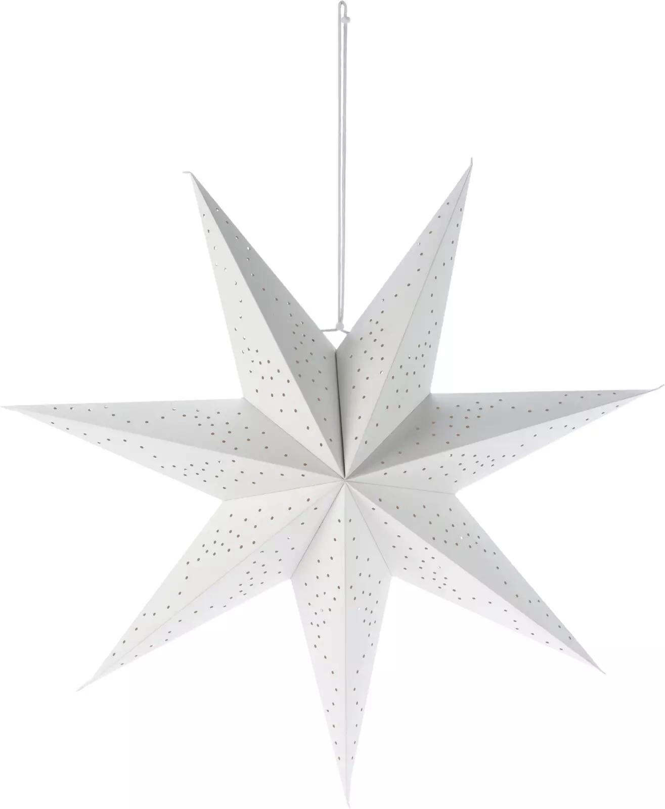 Dekorativ stjärna i vit papper med hålmönster, 7 armar, 60 cm, FSC-certifierat papper.