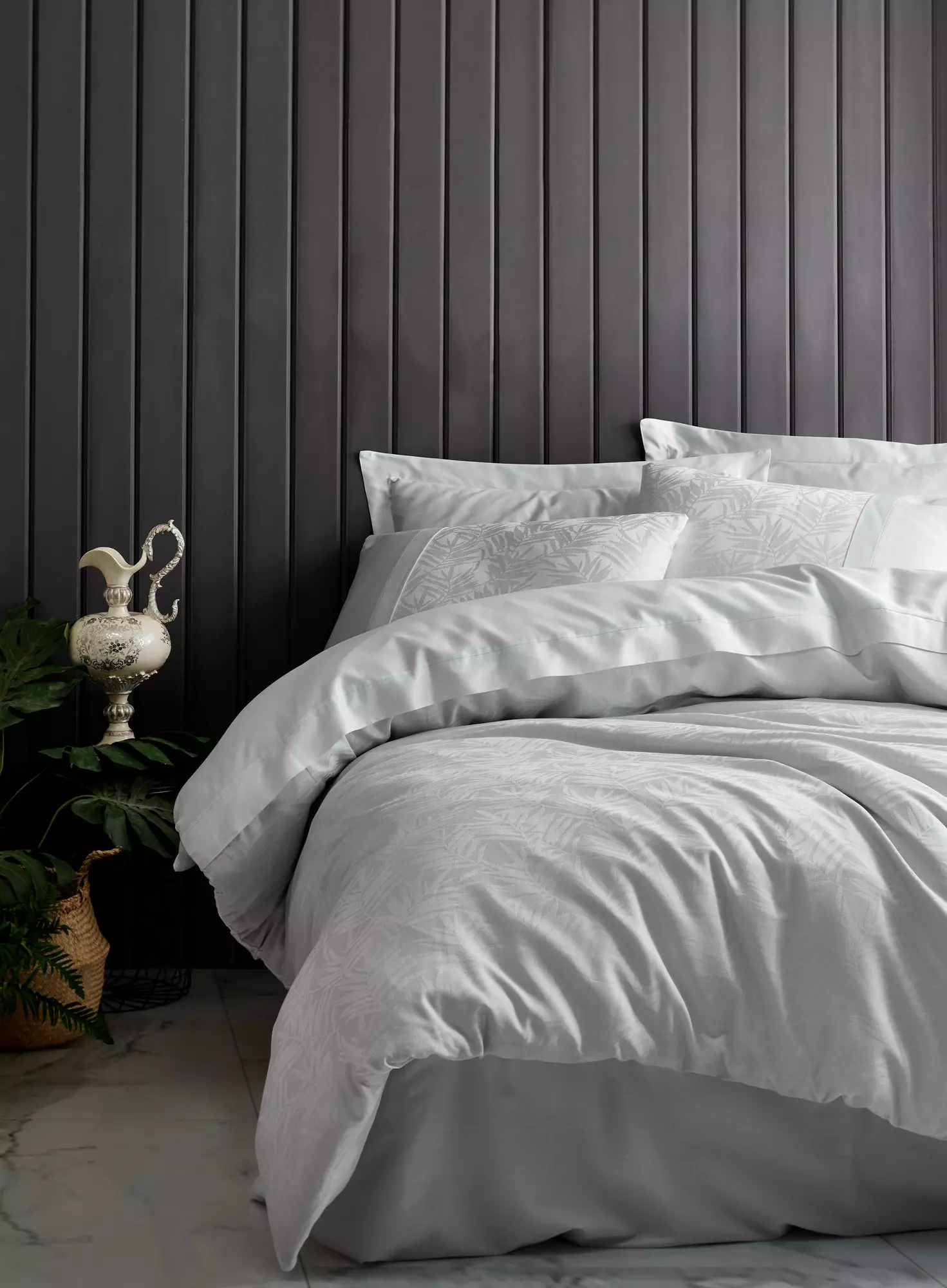 Vårt bäddset är tillverkat av bomullssatin av finaste kvalitet och erbjuder oöverträffad mjukhet och hållbarhet. Jacquarddesignen ger sovrummet en sofistikerad touch och gör det till ett perfekt val för dig som uppskattar de finare sakerna i livet.