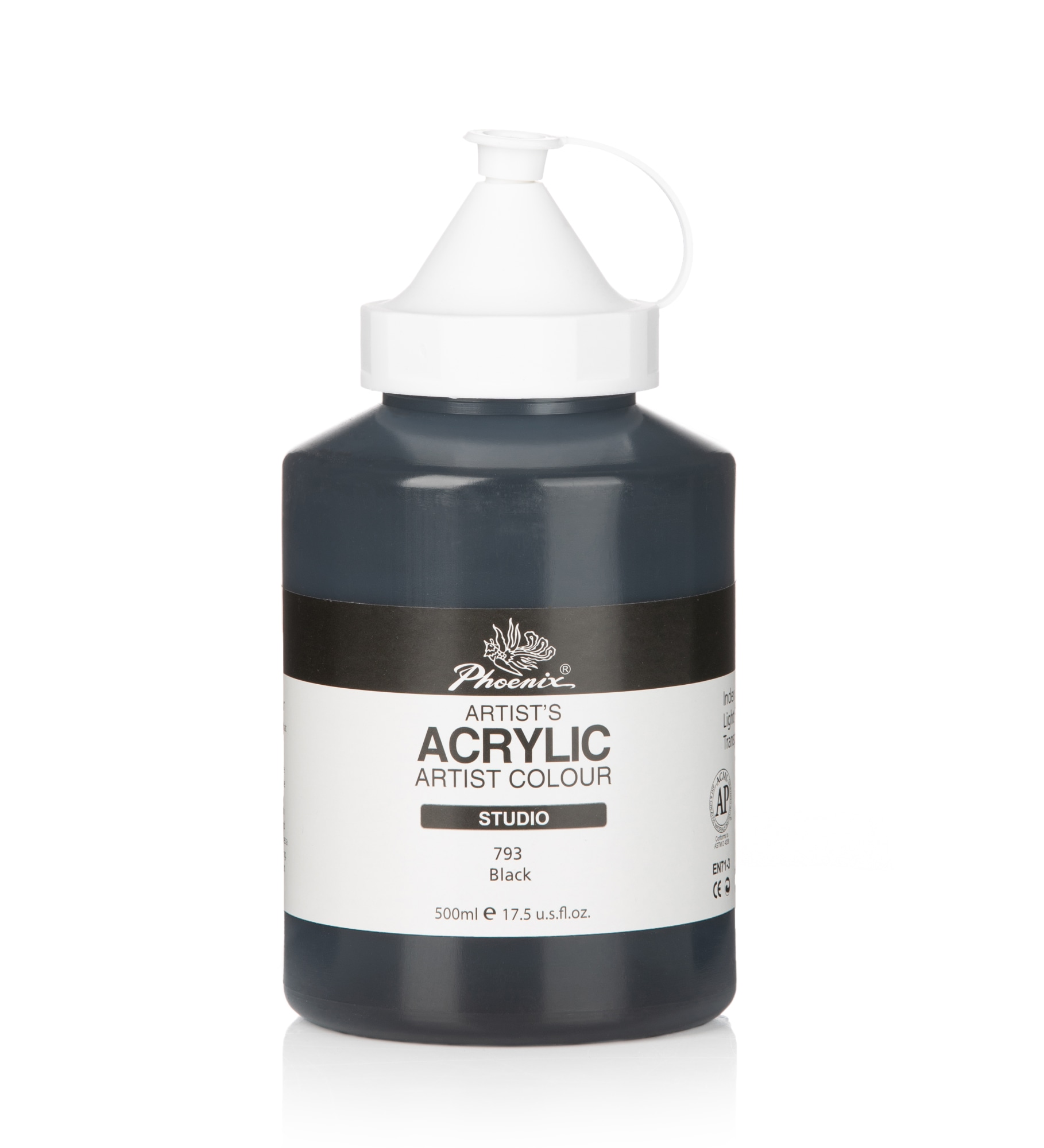 Phoenix Artist Studio 500ml akrylfärg Svart