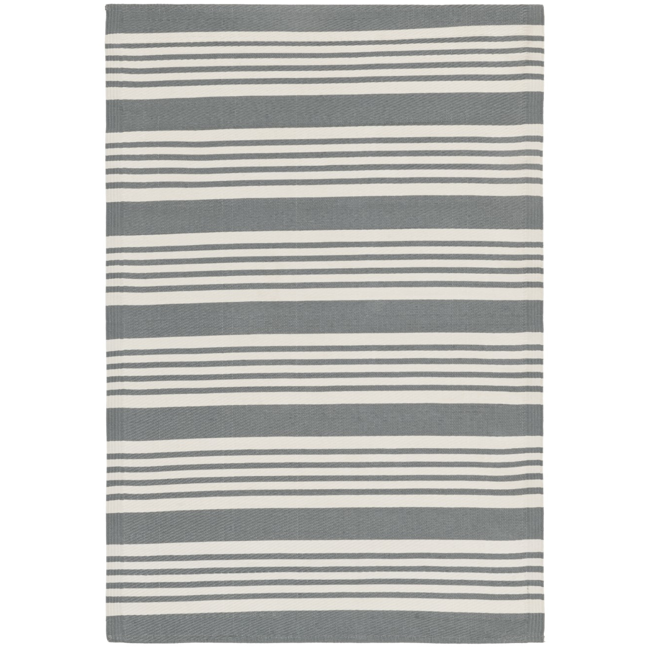 Lätt, utomhusanpassad plastmatta. Grå och vit randig. Material är 100 % polypropen. Rengörs med fuktig trasa.