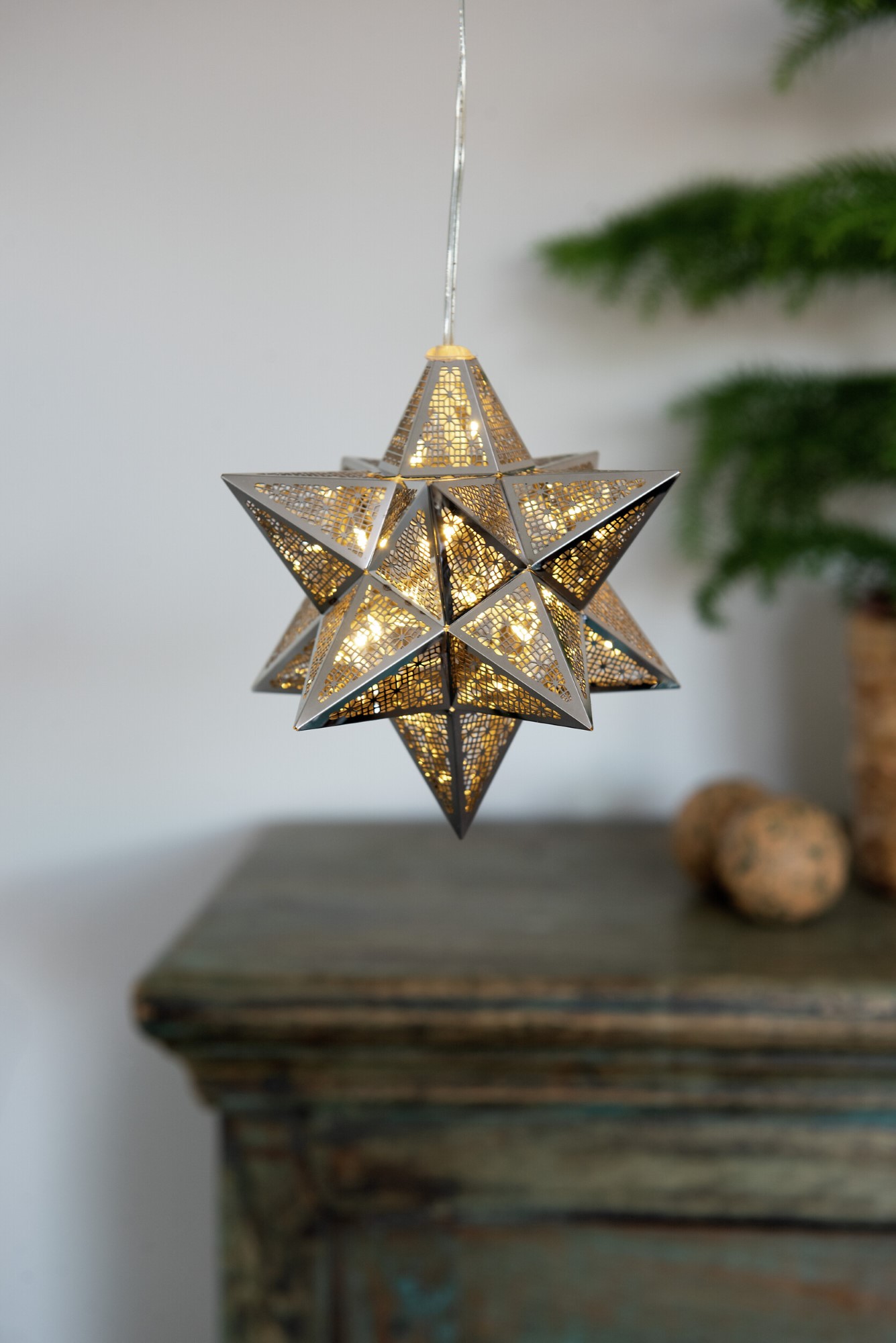 Avsedd för inomhusbruk. Den tredimensionella stjärnan lyser vackert i alla riktningar. Speciellt stilfull när den är tänd, LED-lampor inuti stjärnan. Materialet är rostfritt stål.