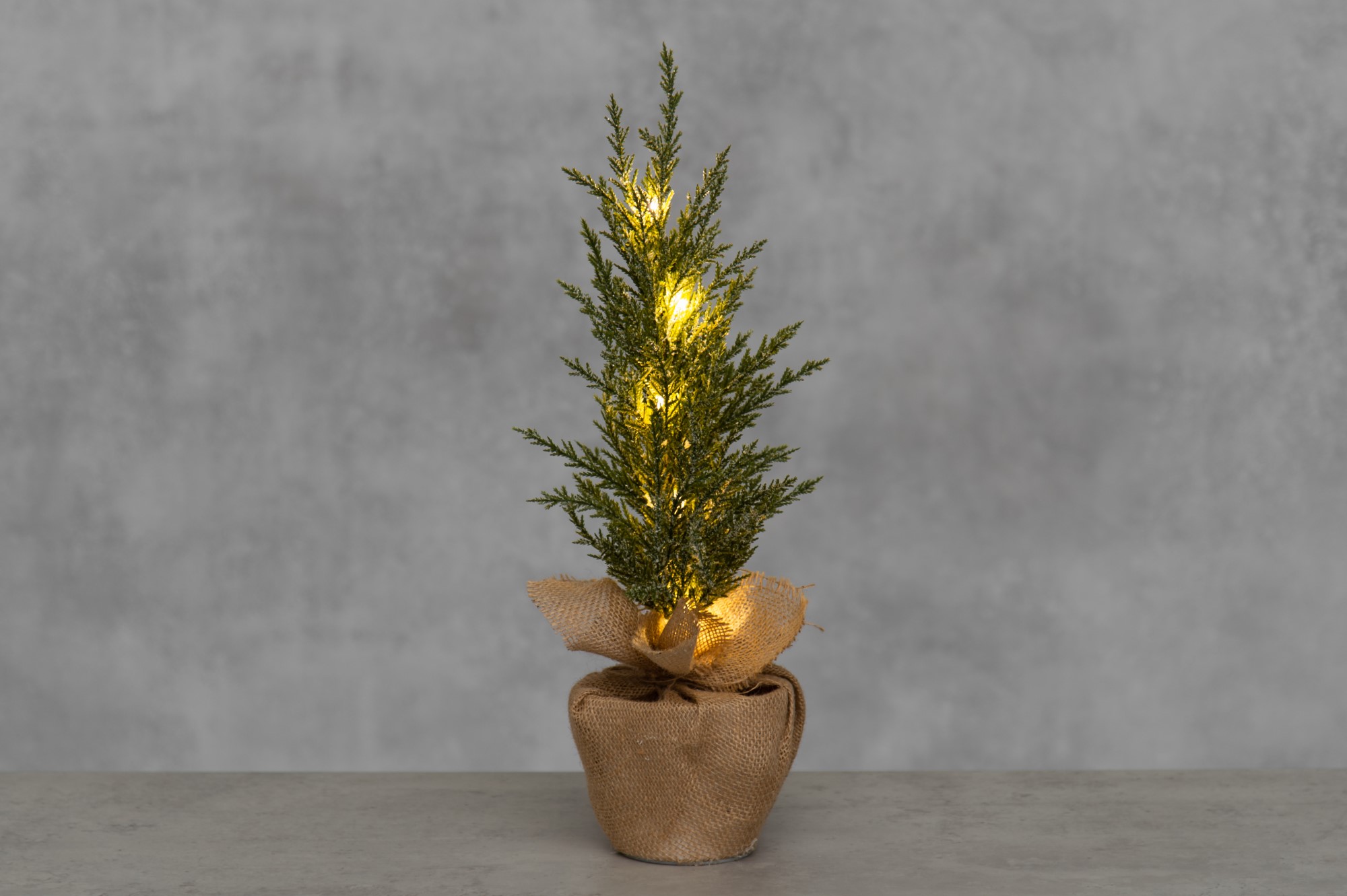 Snyggt, batteridrivet dekorativt träd för inomhusbruk. Det dekorativa trädet är lätt att ställa nästan var som helst, det är precis i rätt storlek för en bordsdekoration. 8 lysdioder lyser upp trädet vackert och krukan är dekorerad med en jutesäck. Det dekorativa trädets höjd är 45 cm.