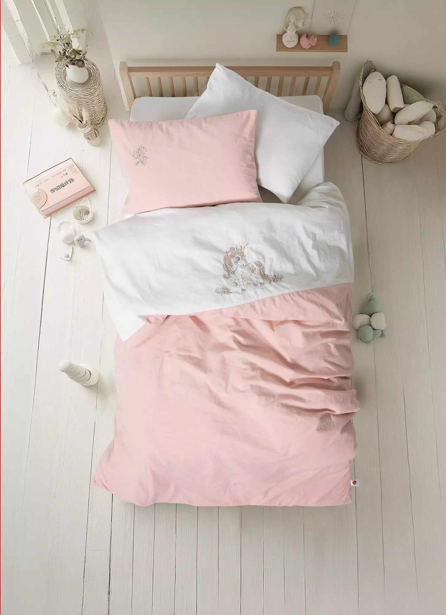 Den krispigt vita färgen på det här täckeöverdraget ger en touch av elegans till alla barnrum. Det är det perfekta komplementet för att skapa ett lugnt och elegant utrymme för ditt barn att växa och trivas i.