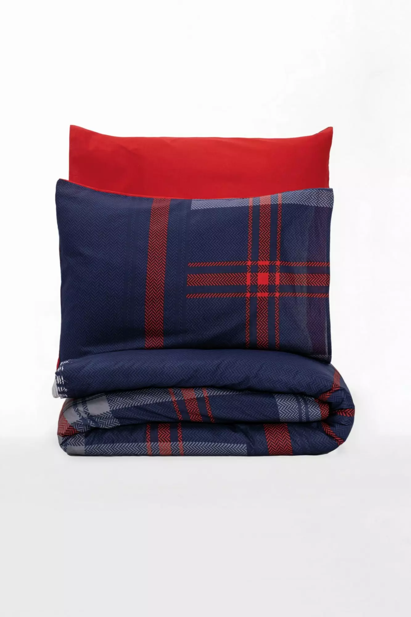 Med en fantastisk kombination av rött och mörkblått ger detta set med överkast en touch av elegans till alla sovrumsinredningar. Den tidlösa designen kompletterar enkelt både moderna och traditionella stilar, vilket gör det till ett mångsidigt val för alla hem.