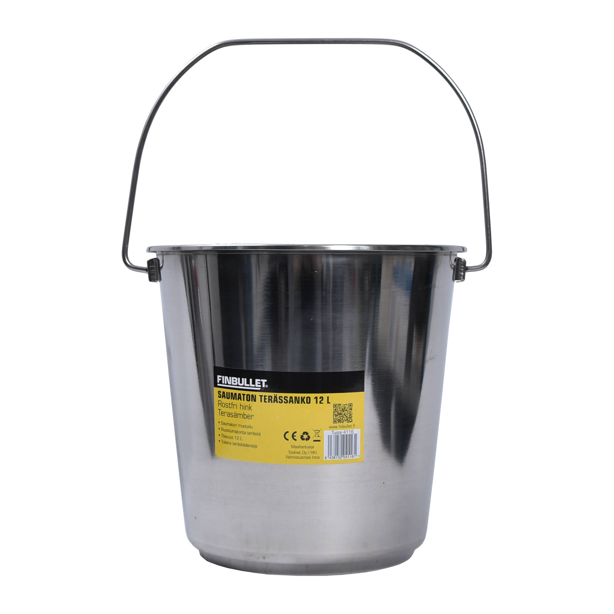 Sömlös hink i rostfritt stål. Stabilt bärhandtag, volym 16 liter.