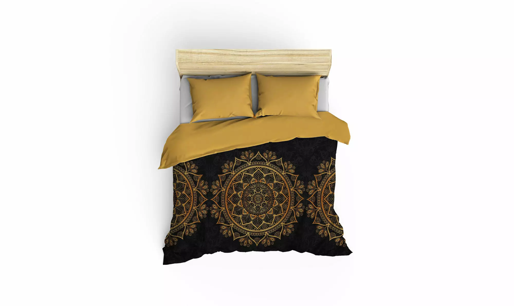 Den fantastiska färgkombinationen guld och svart ger en touch av sofistikering till din sovrumsdekor. Den reaktiva trycktekniken säkerställer livfulla och långvariga färger som kommer att förbättra atmosfären i ditt utrymme.
