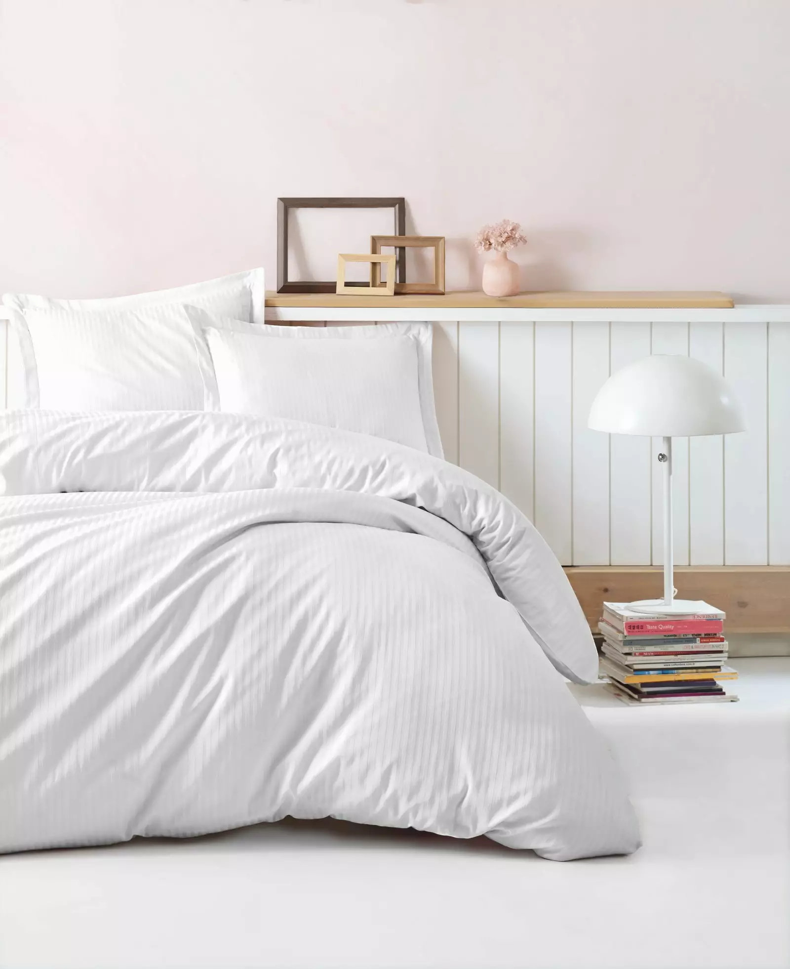 Med reaktiv tryckteknik har vårt set med överkast levande och långvariga färger. Den vackra vita nyansen i detta set kompletterar enkelt alla sovrumsinredningar och ger en touch av elegans till ditt utrymme.