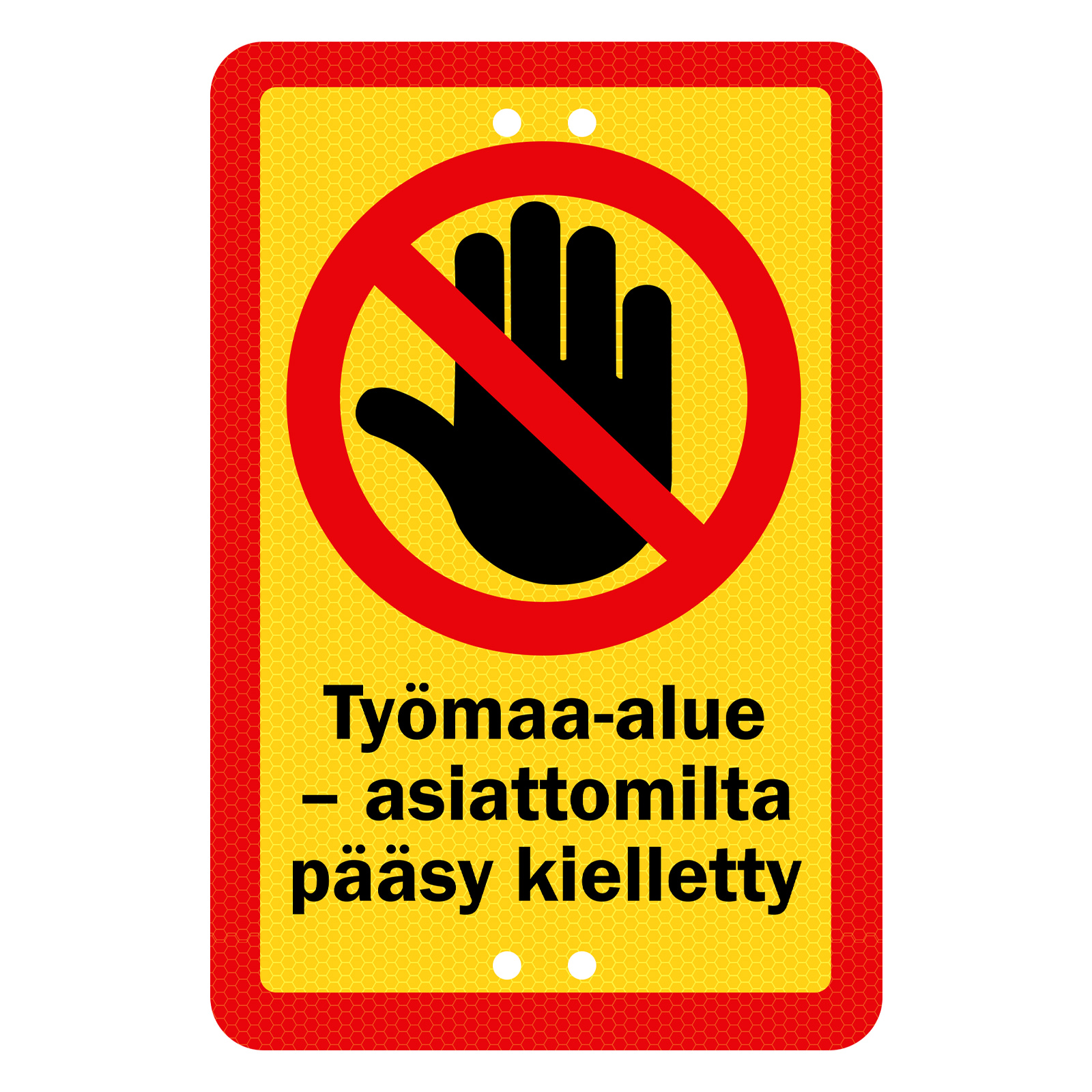 Sekure 2mm 20x30cm aluminiumskylt "Arbetsområde - obehörig åtkomst förbjuden"