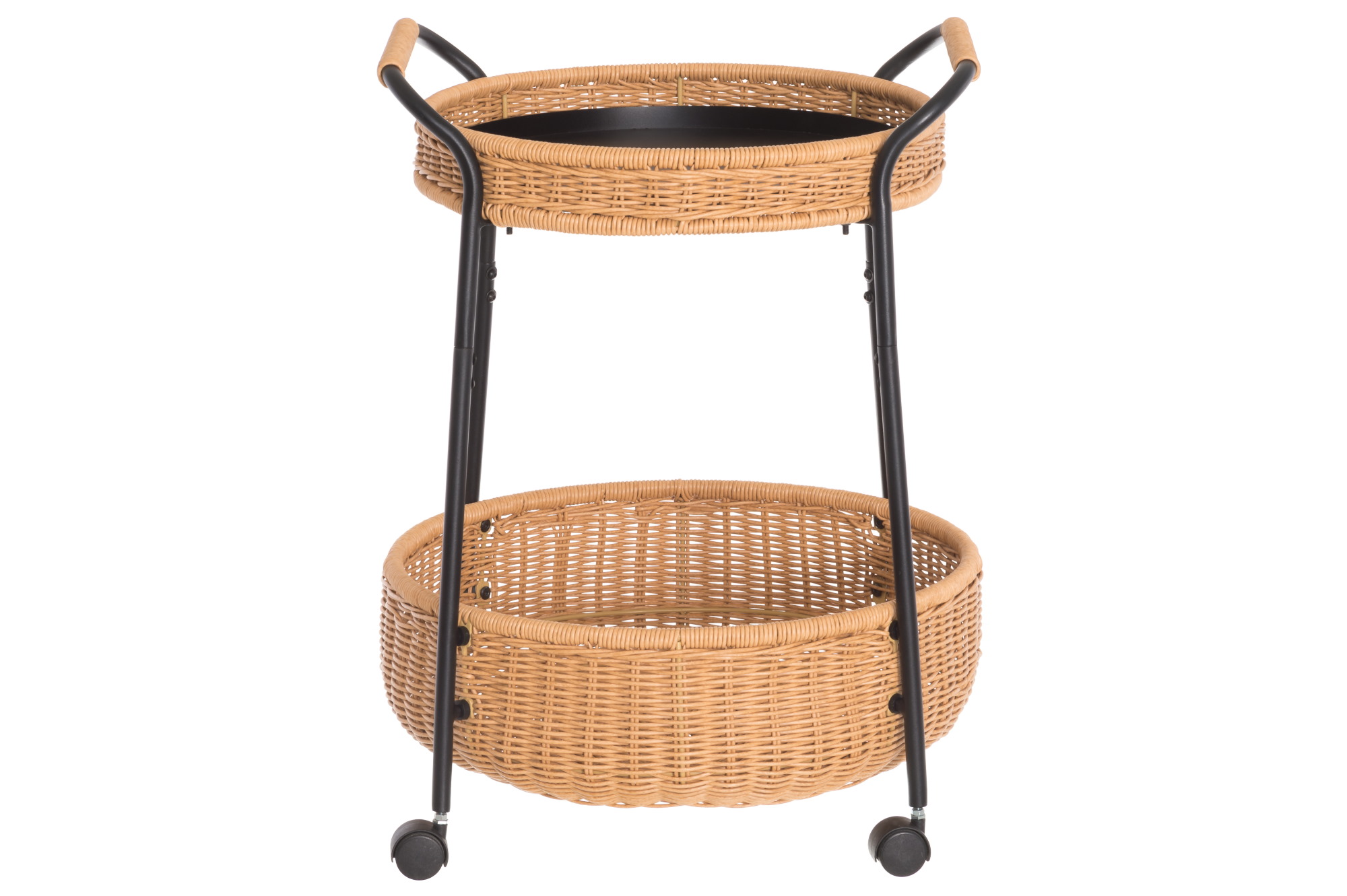 Vagnens flätade delar är gjorda av rottingflätad polyeten och ramen är gjord av svart pulverlackerat stål. Svart stål ger en stilfull kontrast till den ljusbruna flätan.