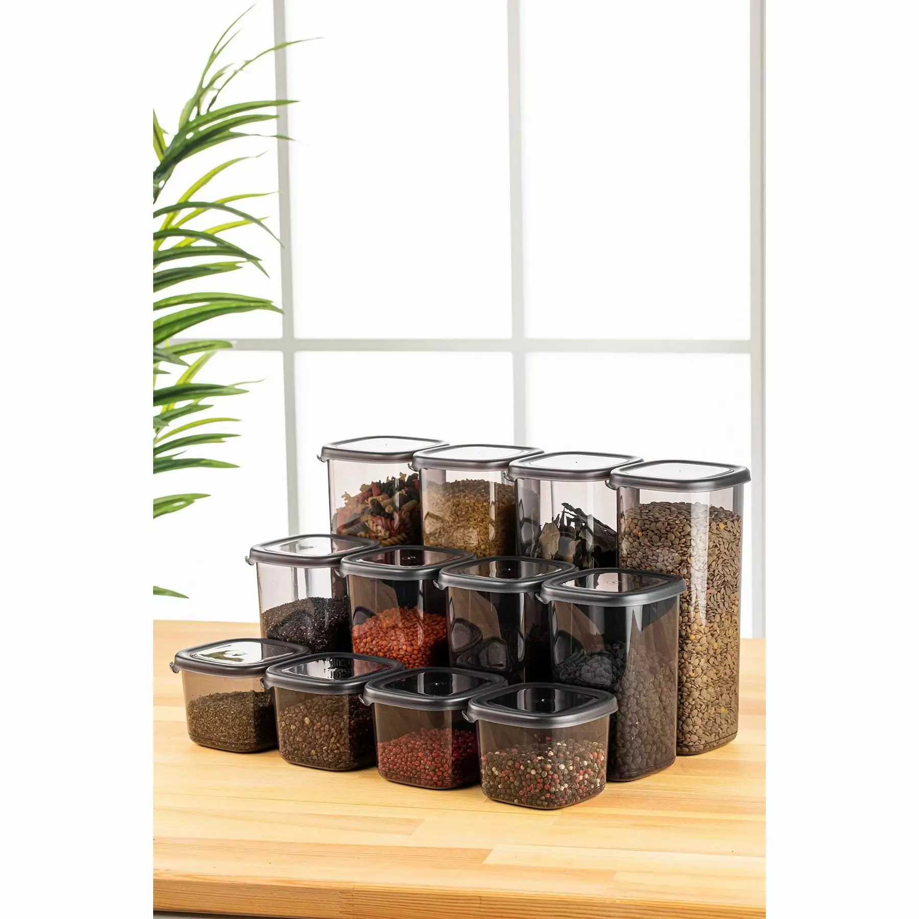 Set med förvaringslådor (12 delar), antracit, 10 x 10 x 9,5 cm / 550 ml, tålig, stilren, mångsidig