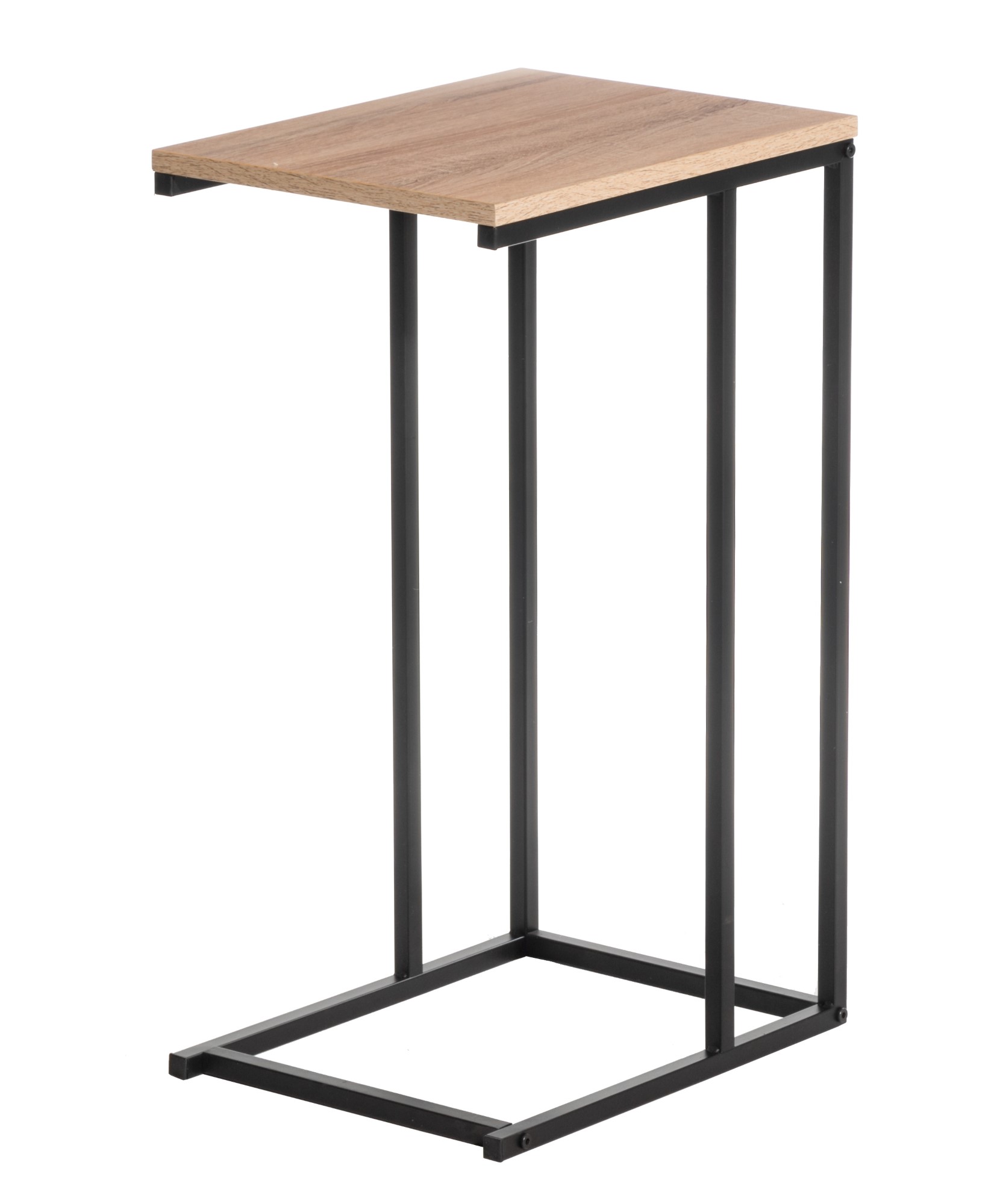 Det multifunktionella sidobordet löser problemet med att använda datorn eller surfplattan på soffan eller i sängen, sidobordet är också idealiskt för att placera olika enheter, tidningar och snacks medan du tittar på TV eller använder en surfplatta. Det multifunktionella sidobordet kan användas på hemmakontoret, i vardagsrummet som soffbord och på många andra ställen efter behov. Det C-formade sidobordet är designat för att spara utrymme. Det snygga sidobordet passar alla typer av miljöer, den vackra träfärgen i kombination med det svarta metallbenet ger bordet ett snyggt utseende.
