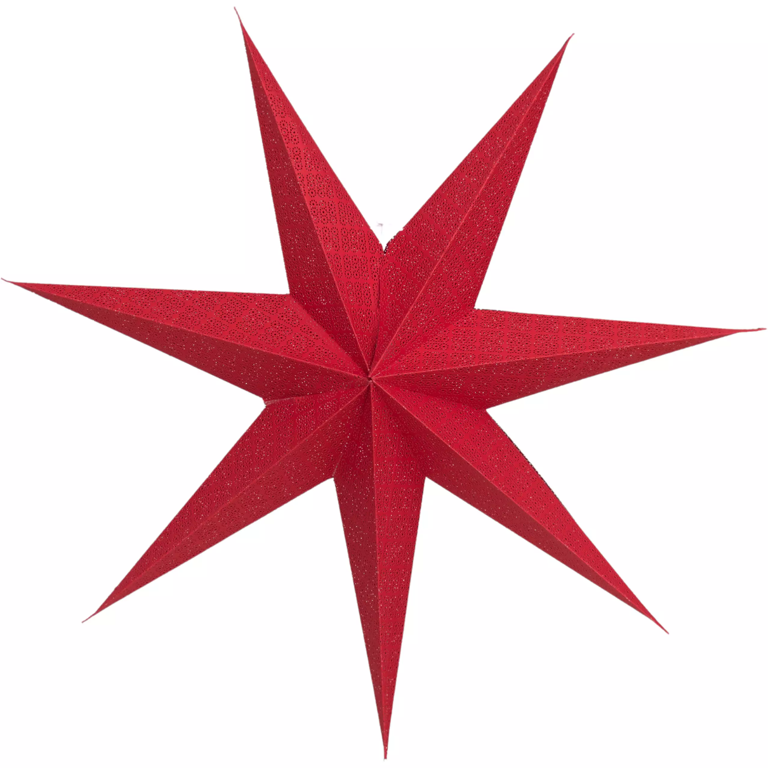 Denna sjuuddiga röda papperstjärna skapar vackert och stämningsfullt ljus för inomhusmiljöer, perfekt för juldekoration.
