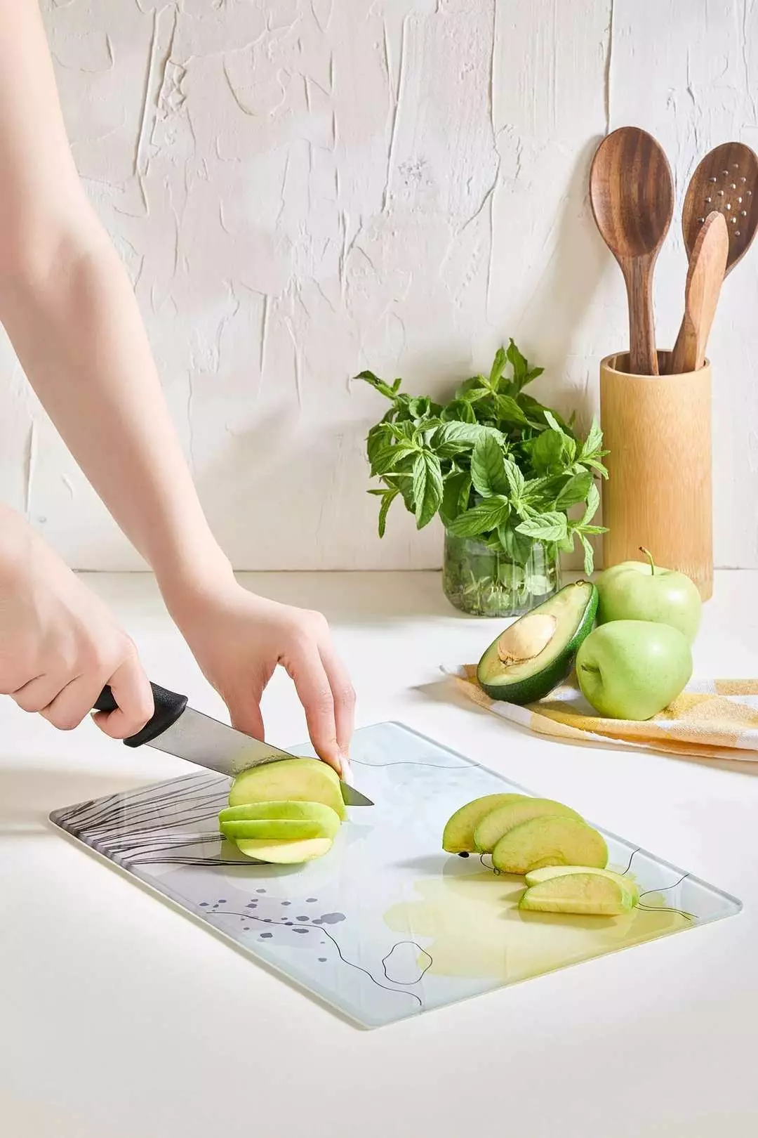 Tillverkad av högkvalitativt härdat glas, är denna skärbräda inte bara hållbar och långvarig, utan också antibakteriell, vilket säkerställer att din mat förblir säker och fri från skadliga bakterier. Säg adjö till korskontaminering och hej till en hälsosammare matlagningsmiljö.