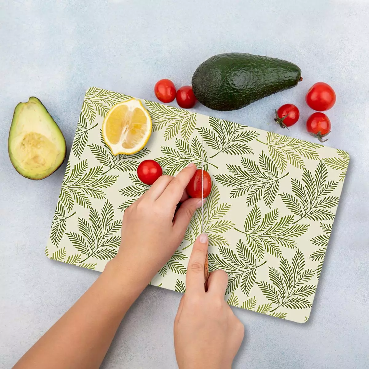 Tillverkad av 4 mm tjockt härdat glas, är denna skärbräda inte bara hållbar och långvarig, utan ger också en hygienisk yta för alla dina matberedningsbehov. De antibakteriella egenskaperna hos glaset säkerställer att din mat förblir säker och fri från skadliga bakterier.